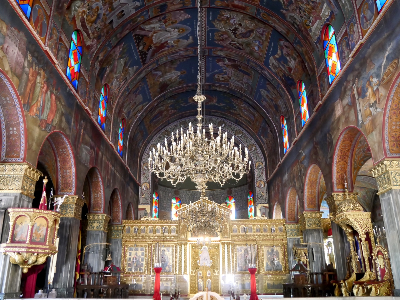 新しい壁画だが,キリストの生涯を描いている.あのパドヴァのジオットの作品を思い出す.構成は似ているが,こちらの方が場面も多い.祭壇も正教らしくまばゆいものだ.聖Dionyssiosはザキントス生まれの16世紀の大司教 やさしい方で数々の奇跡を起こしたとされている.なかなか荘厳な教会だった.残念ながら付属博物館は1300-1700はシエスタで休み さっきのヴェネツィア時代の要塞といい(1430まで),ギリシャ人はいつ働くのだろう..
