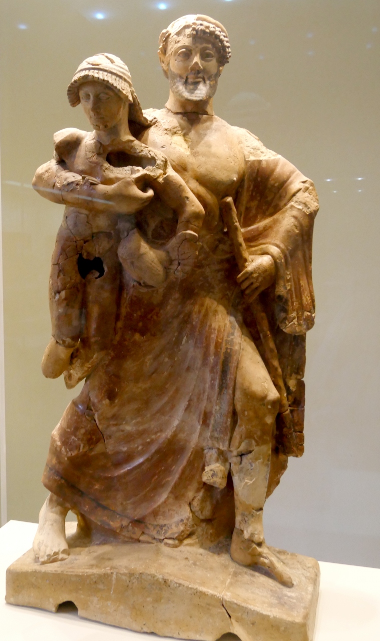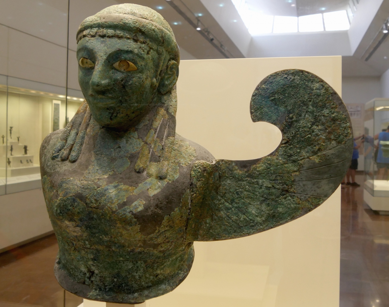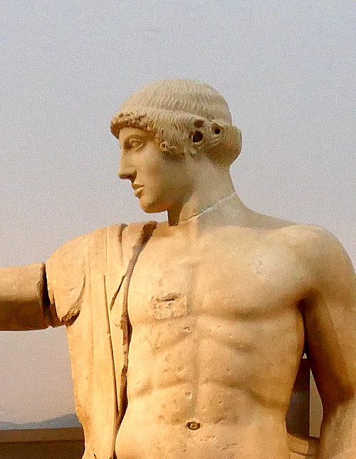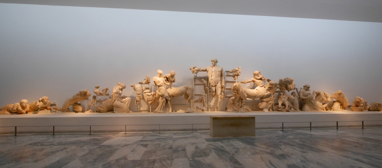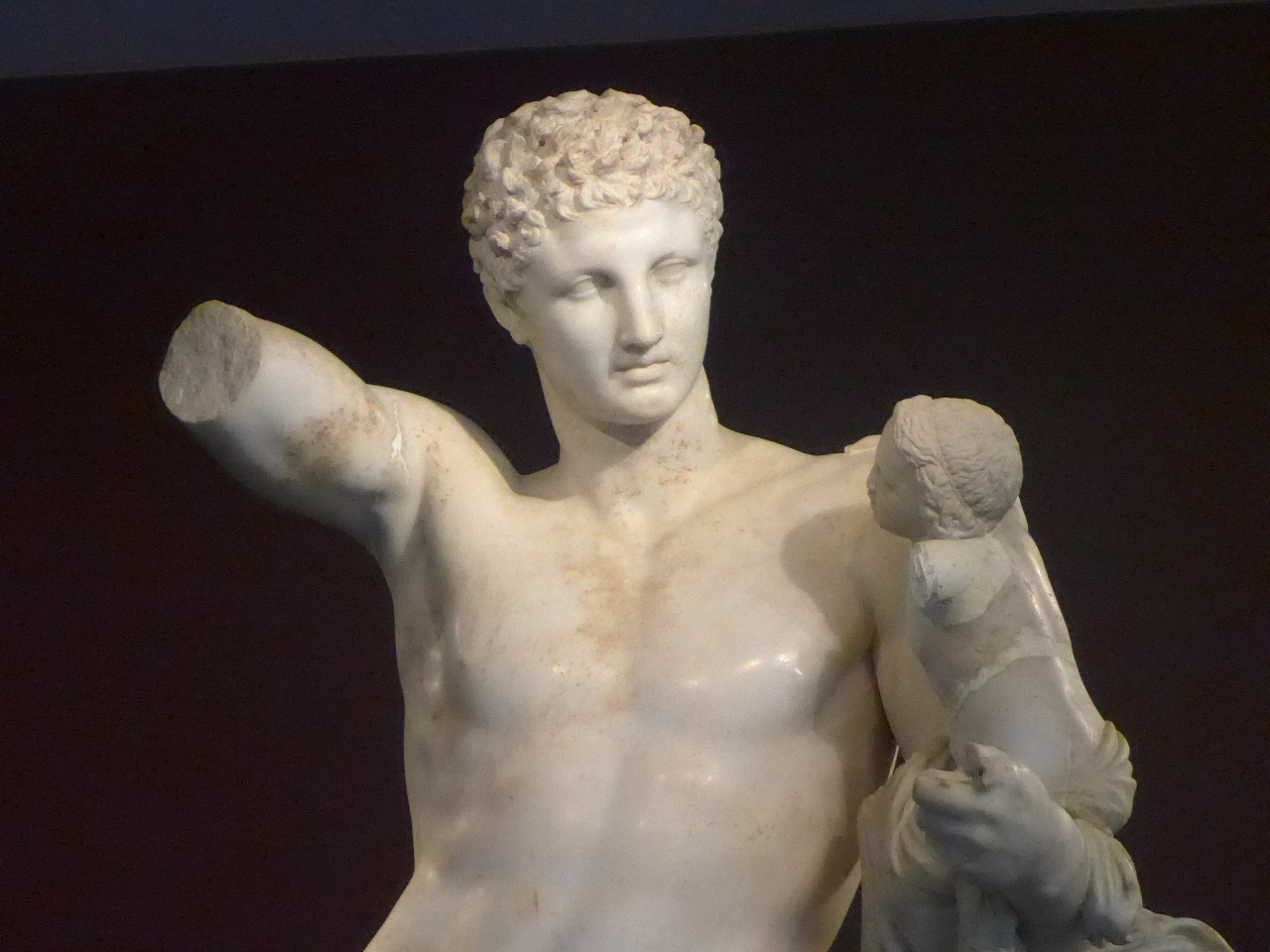 空飛ぶ翼のある胸像,グリフィン像,ゴルゴン像,そしてミケーネ文明の人型Psiタイプなどが目を引く.徐々にギリシャ古典期の文明が作られていく過程に感動する.古典期からヘレニズム,ローマ期の展示にうつっていく.600BCの女神ヘラの頭部,490BCのアテナ神の頭部,480‐470BCのガニュメデスをさらうゼウス 330BCのヘルメス像等が素晴らしい.でも圧巻はアテネ神殿の破風の彫刻群だ.ケンタウルス族とラピタイ族の戦いの場面とPelopusとOinomaos王の戦車競走の出陣の場面があたかも叙事詩のように描かれる.圧倒されてしまった!紀元前4世紀のエリス式の陶器も素晴らしい.最後には古代ローマの彫像.ギリシャの芸術の本流がローマへと結実していくこともわかる.すばらしい博物館!必見だ!