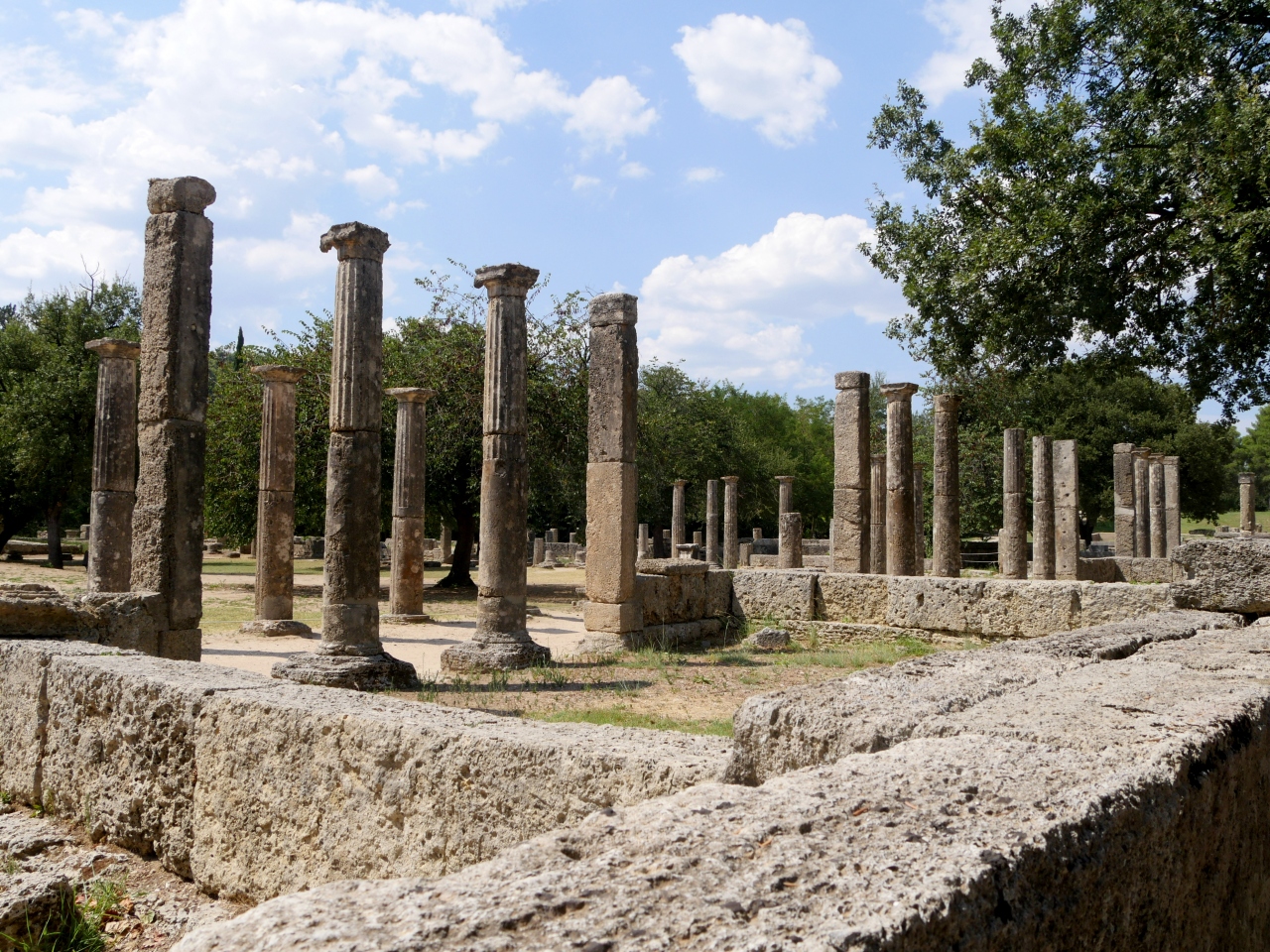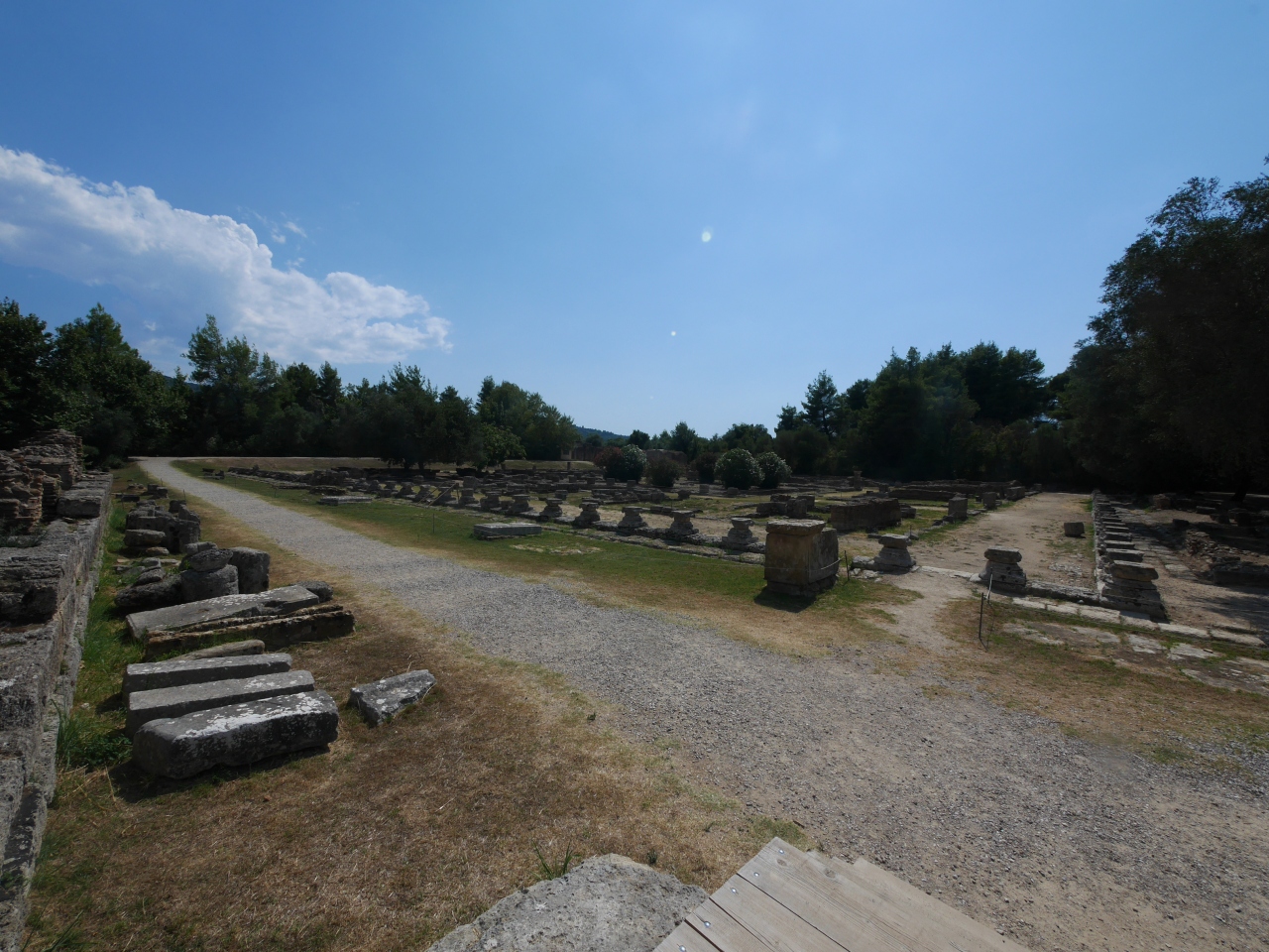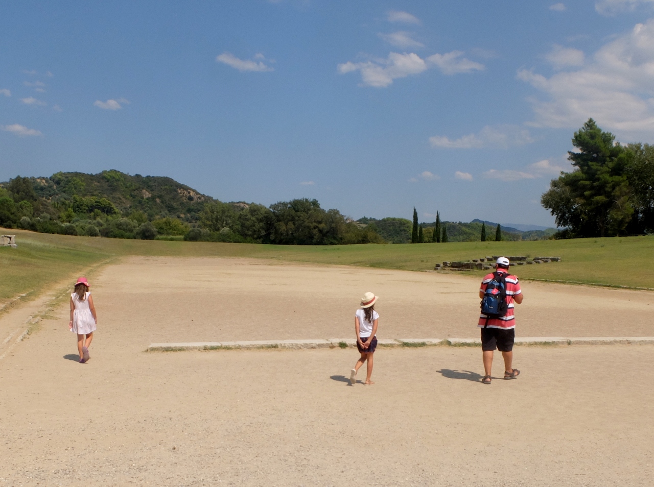 今のオリンピアは考古学博物館は素晴らしかったが,廃墟と言っていいような遺跡だった.かろうじてヘラ神殿,フェイディアスの仕事場,フィリペイオンなどが原型が彷彿とさせたが,ぺロピオン,メトロオンなどどこにあるかさえ分からない遺跡もあった.トルコのエフェソス遺跡が,壮大に残っているところから比べると,残念としか言いようがない.しかしここで1200年も,中断することなく,競技が行われたと考えると感慨深い.古代のアクロポリスかとおもっていたが,競技を行う神殿群であった.でもやっぱり一回は見たほうがいい遺跡だ
