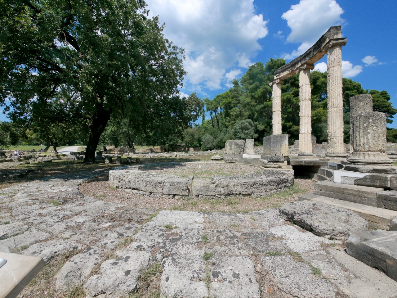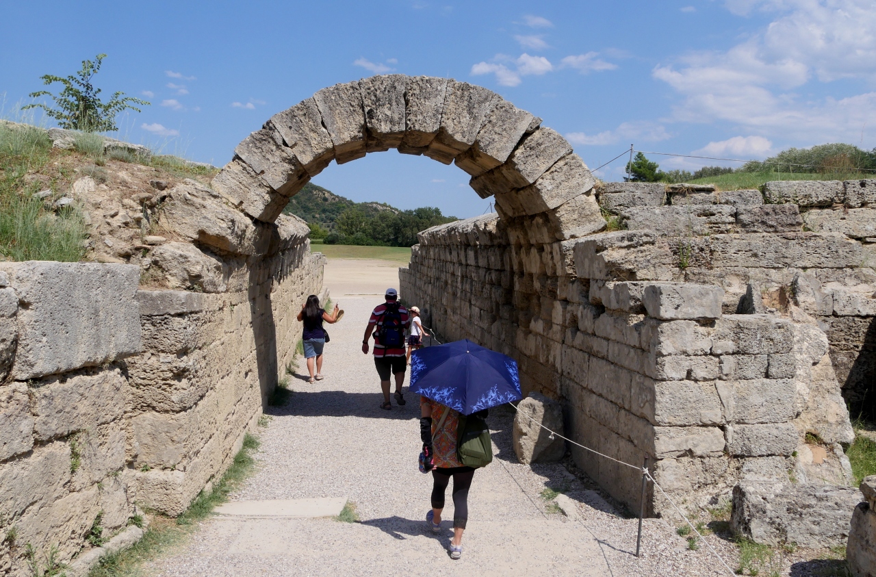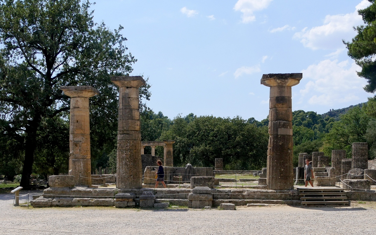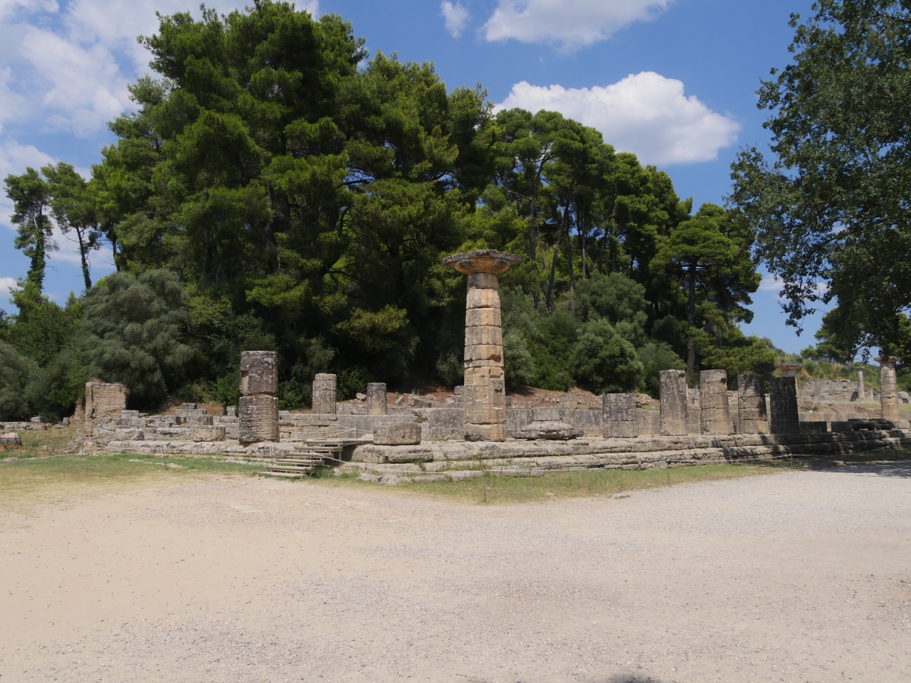 今のオリンピアは考古学博物館は素晴らしかったが,廃墟と言っていいような遺跡だった.かろうじてヘラ神殿,フェイディアスの仕事場,フィリペイオンなどが原型が彷彿とさせたが,ぺロピオン,メトロオンなどどこにあるかさえ分からない遺跡もあった.トルコのエフェソス遺跡が,壮大に残っているところから比べると,残念としか言いようがない.しかしここで1200年も,中断することなく,競技が行われたと考えると感慨深い.古代のアクロポリスかとおもっていたが,競技を行う神殿群であった.でもやっぱり一回は見たほうがいい遺跡だ