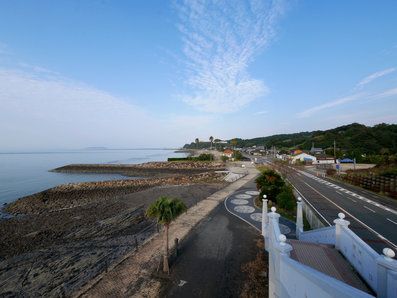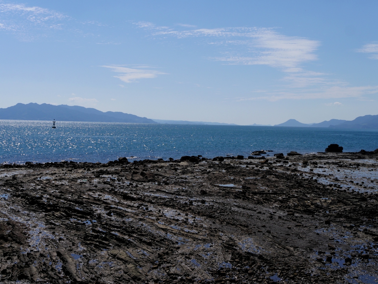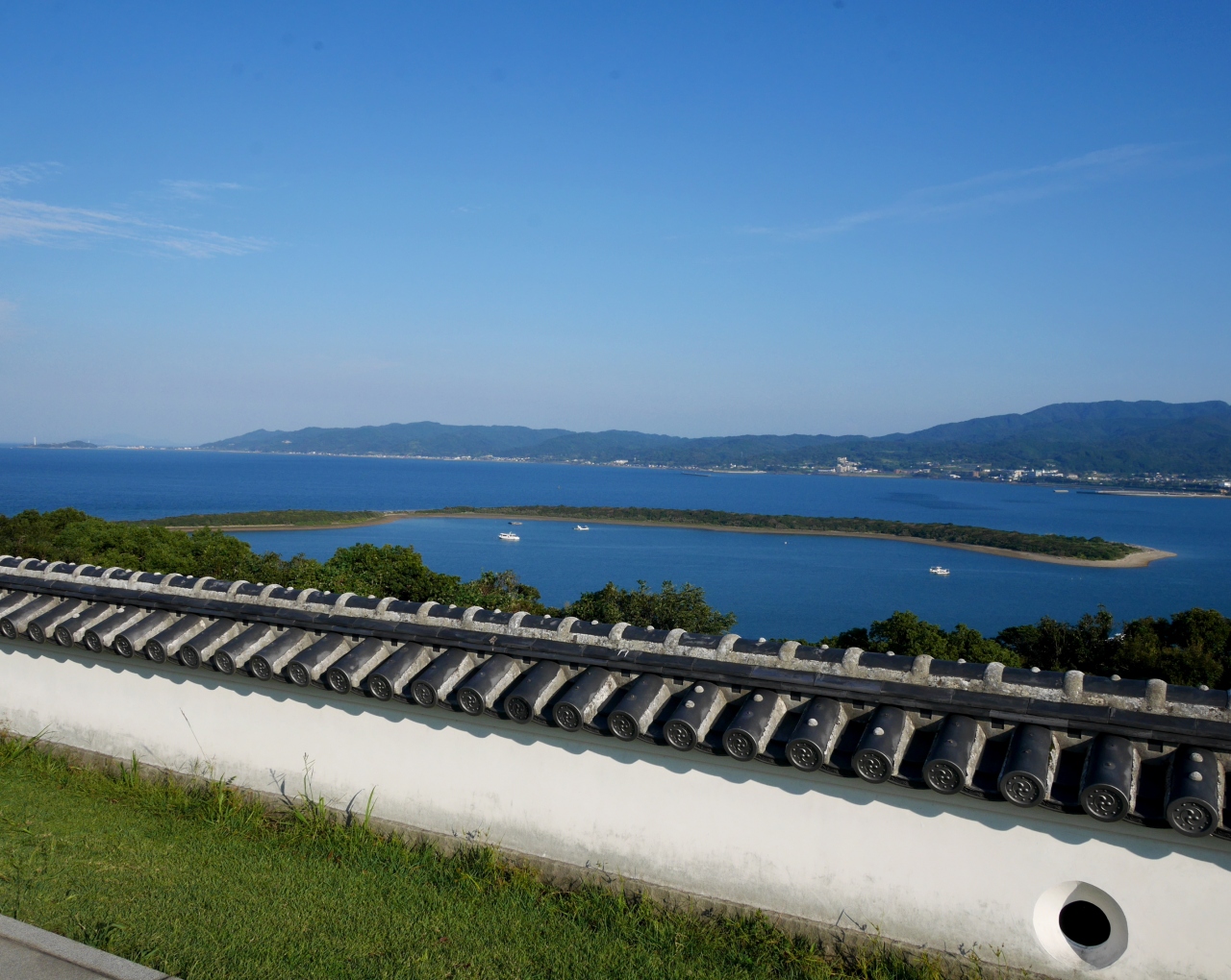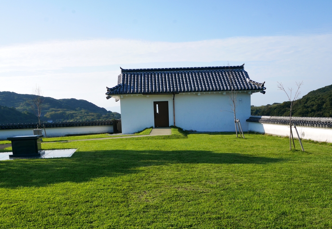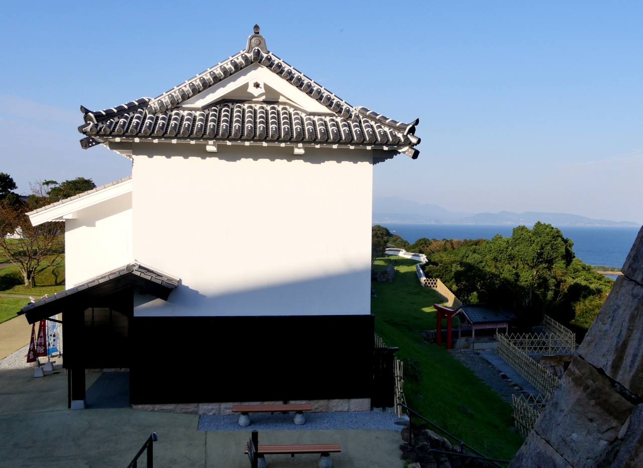 富岡城址を見学.いくつかの櫓や高麗門が再建されている.苓北町歴史資料館では,かつての富岡城の模型や資料が展示.この城が落ちなかったことが結局キリシタンの敗北へと続いていく.山の上の高台にあり堅固な城だ.本丸はビジターセンターとなっていて少し興ざめ.中身は何もない