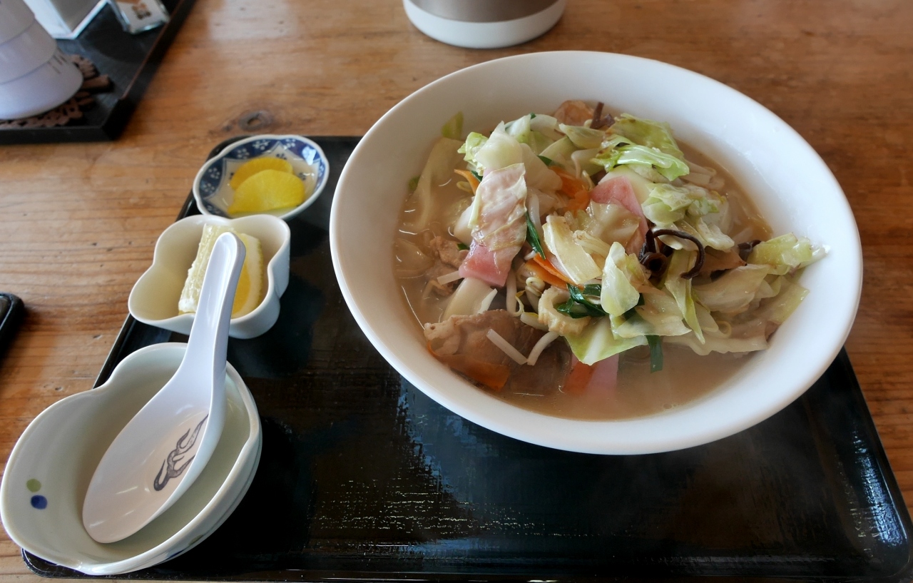 えびす公園の隣にある.有名なシモンうどん(白サツマイモ)にせずに,1000円のチャンポンにした.お新香とデザート付き 野菜も多く,スープもしつこくなく,さっぱりしていて割とおいしかった.景色も良くローカルな雰囲気で入ってもいい店だ.