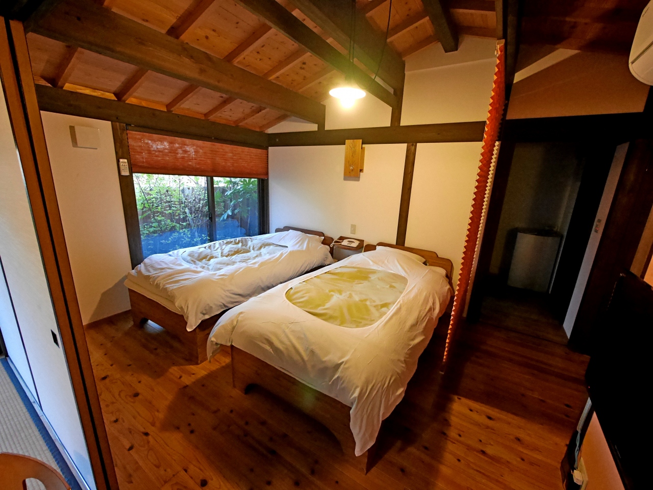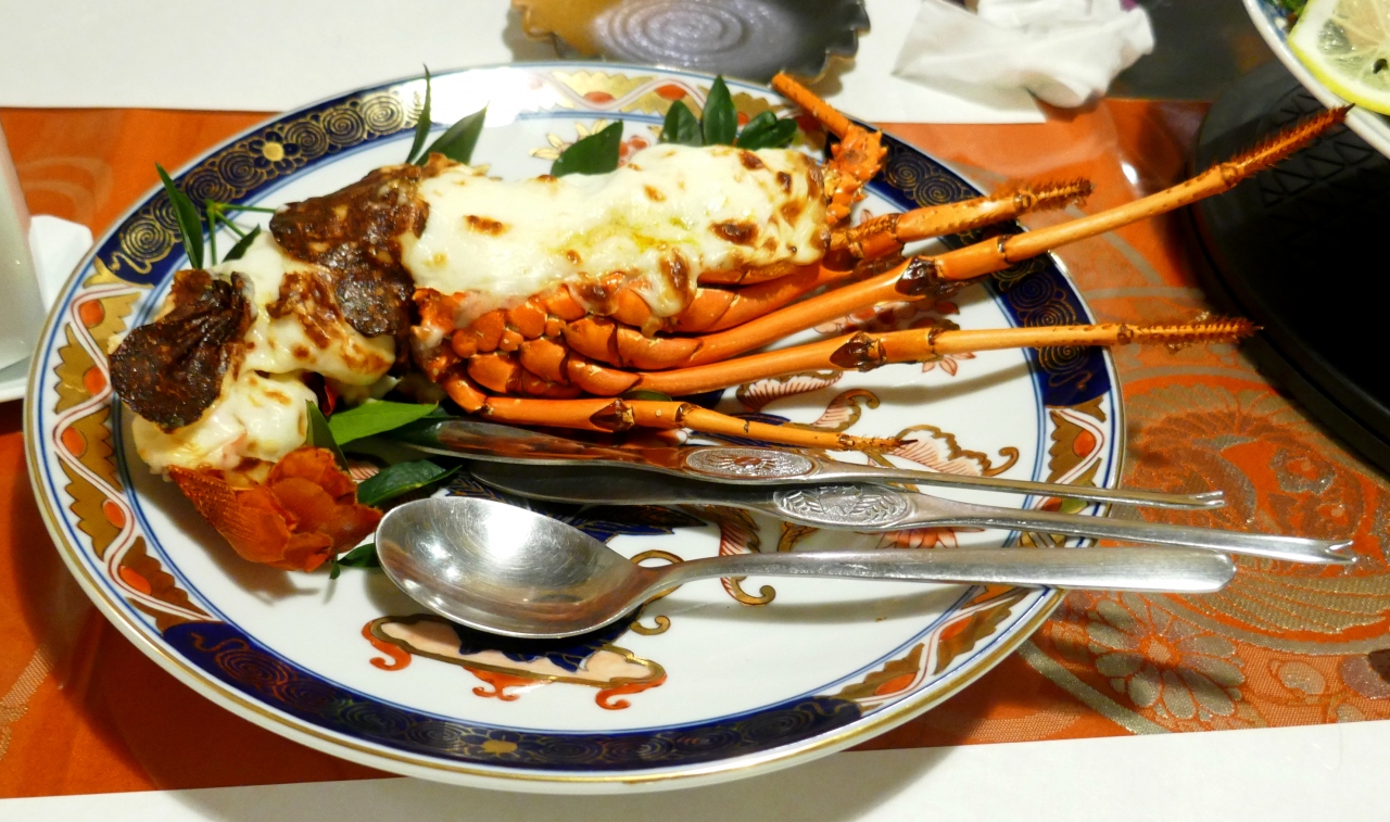 これほどの気遣いの旅館はそうそうないだろう.部屋は離れで静か,部屋にも五右衛門風呂がある.浴室はまあまあ,露天風呂もなかなか.なんといっても夕食,鉢盛 これで二人前 豪華なイセエビをはじめ これでもかという魚のオンパレード うにもあわびもかんぱちも天然タイも まあすごい 食べきれなかった刺身はしゃぶしゃぶにして食べるという凝りよう.それ以外もこれでもかという感じ.超豪華版の夕食だった.朝もイセエビの味噌汁をはじめ,種類も多い.感心したのは全員に洋食もつけていることだ.場合によりお弁当としても持って行ける.さらにおにぎりとから揚げの昼食付 これで税抜19800円!これはリピーターが増えるね!クレジットカードでの決済が悪いみたいだった 今度行ったときはチップを置いて来たい