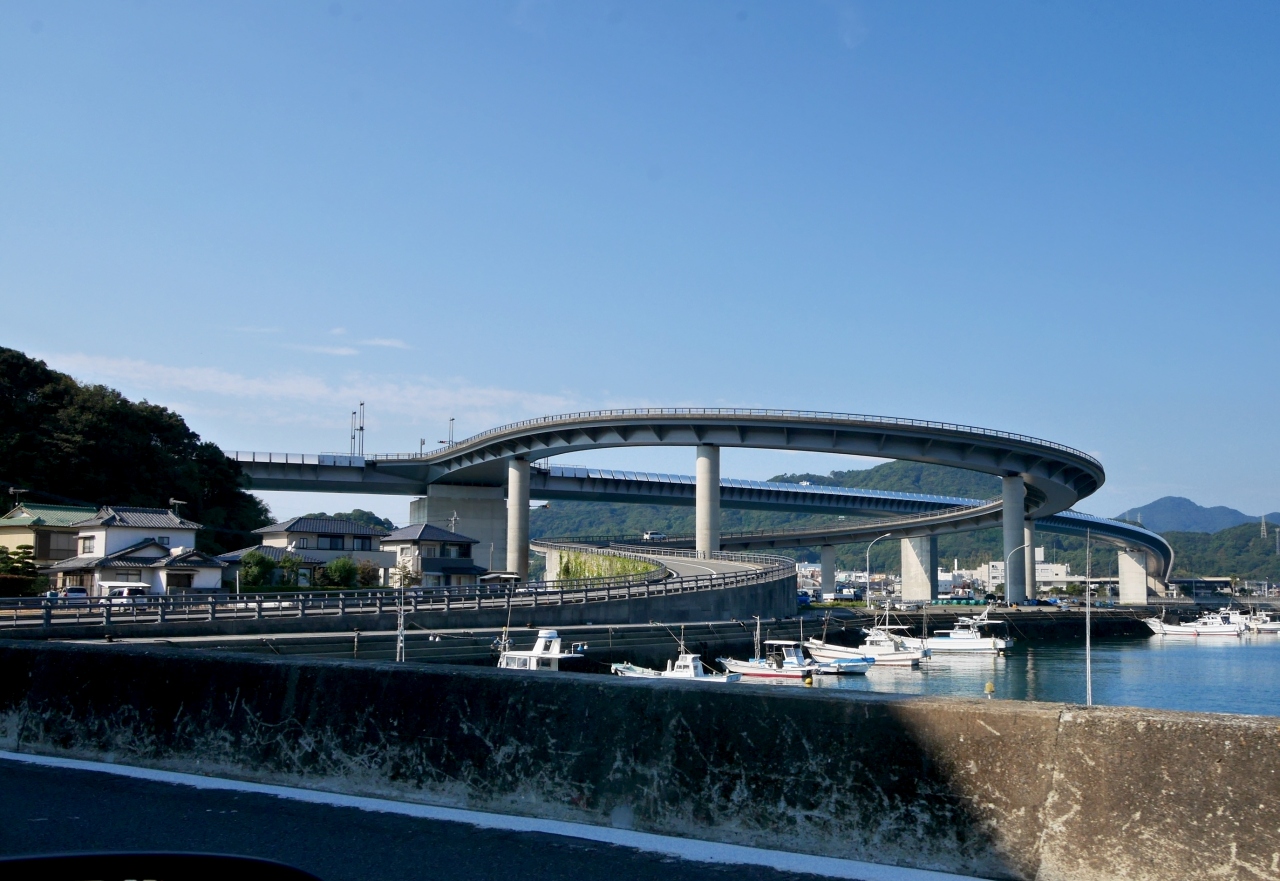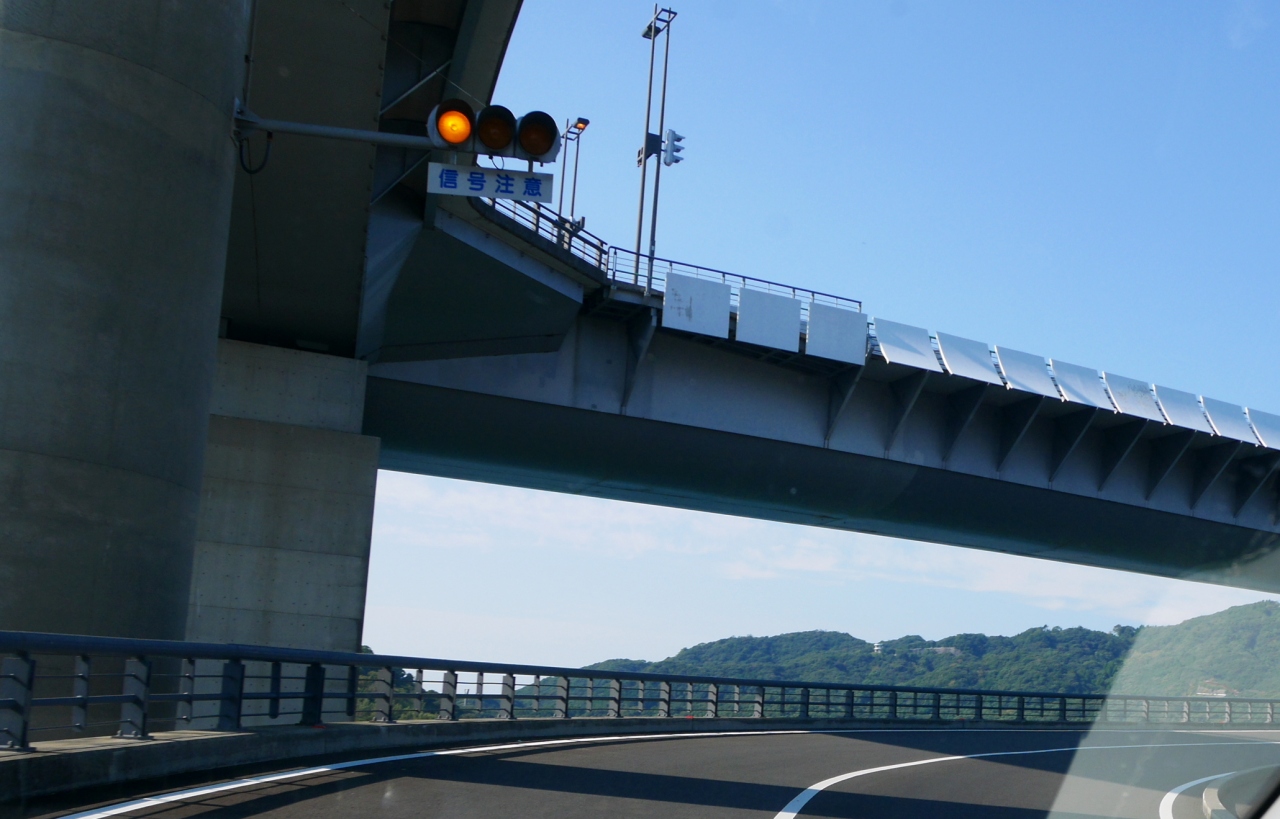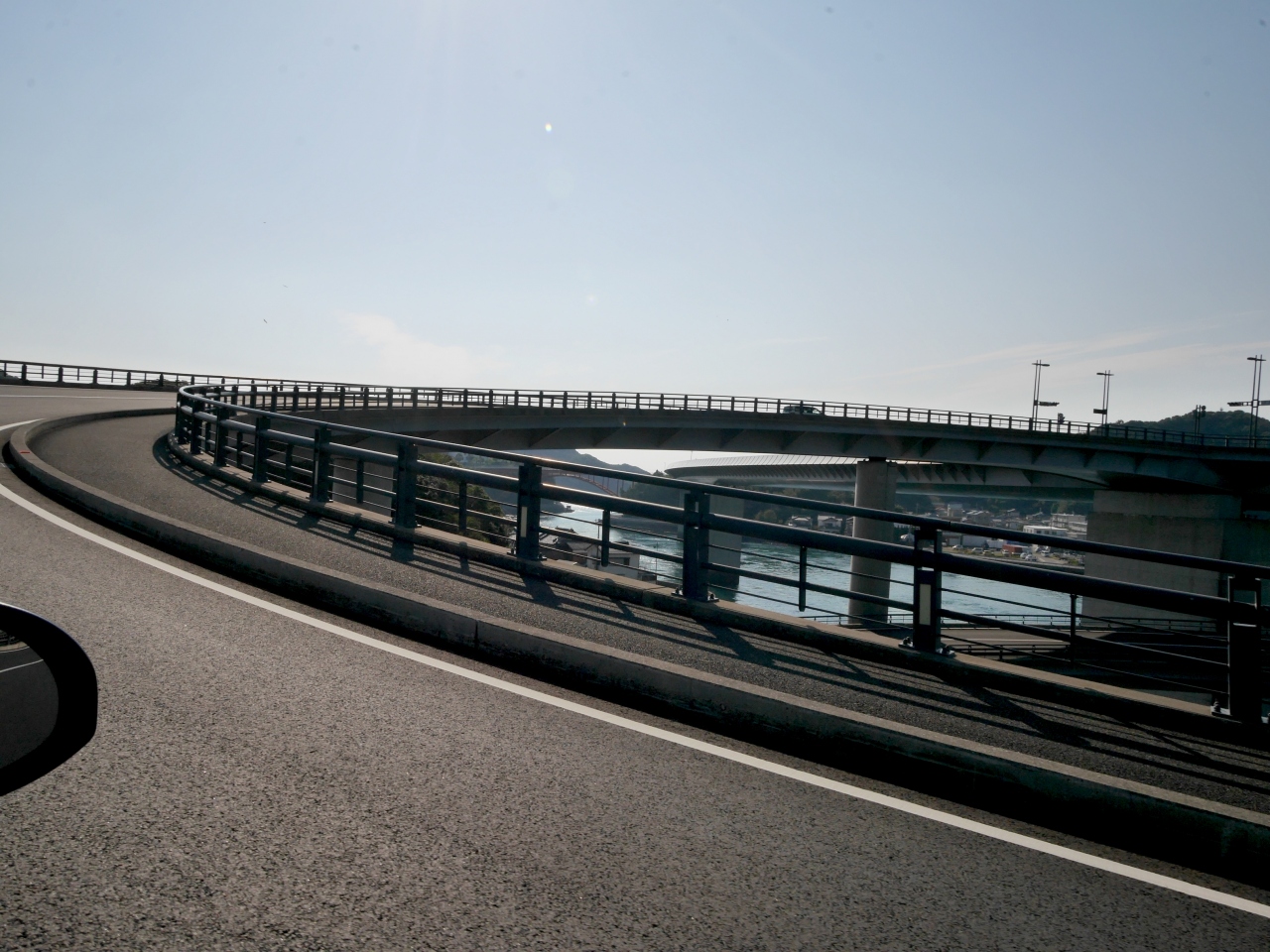 橋の途中に交差点があったり,カーブが多いユニークな橋 ドライブ最高!