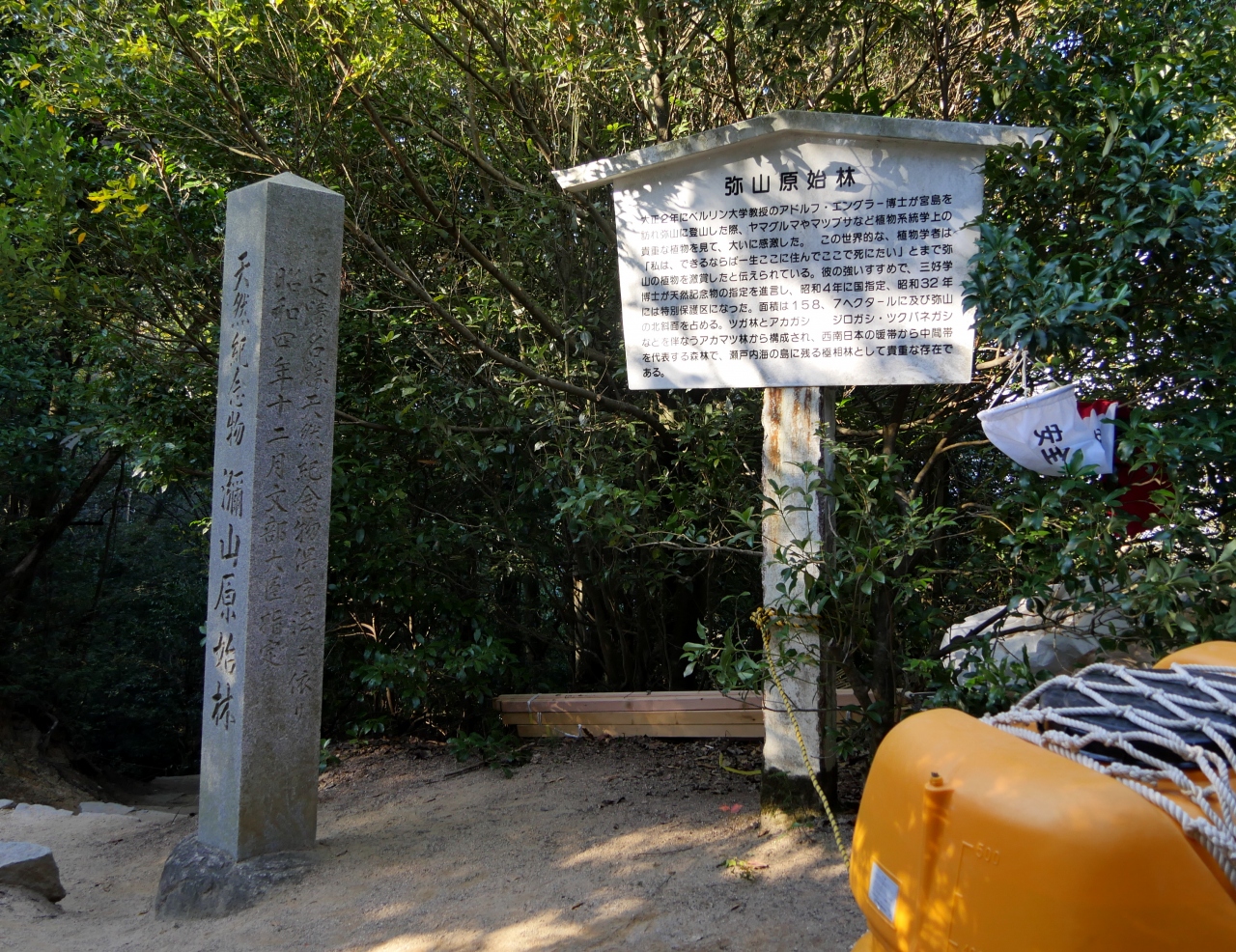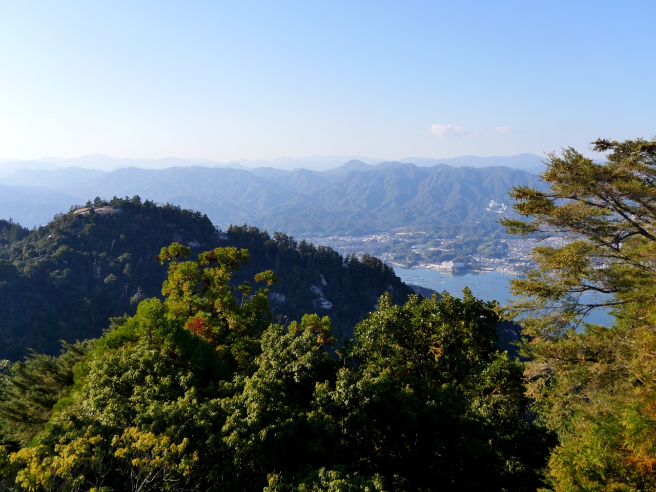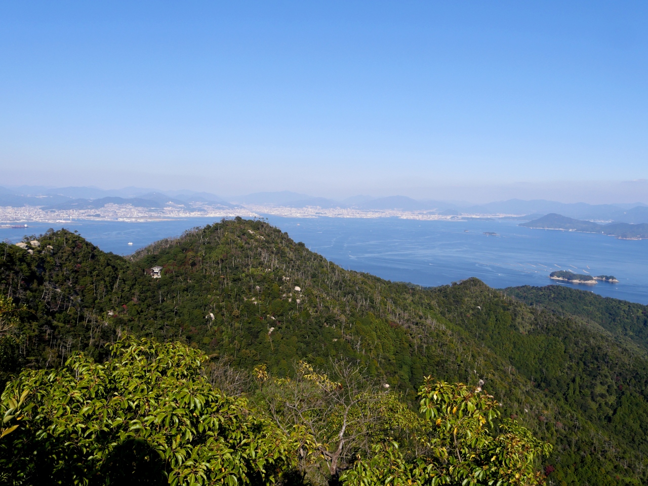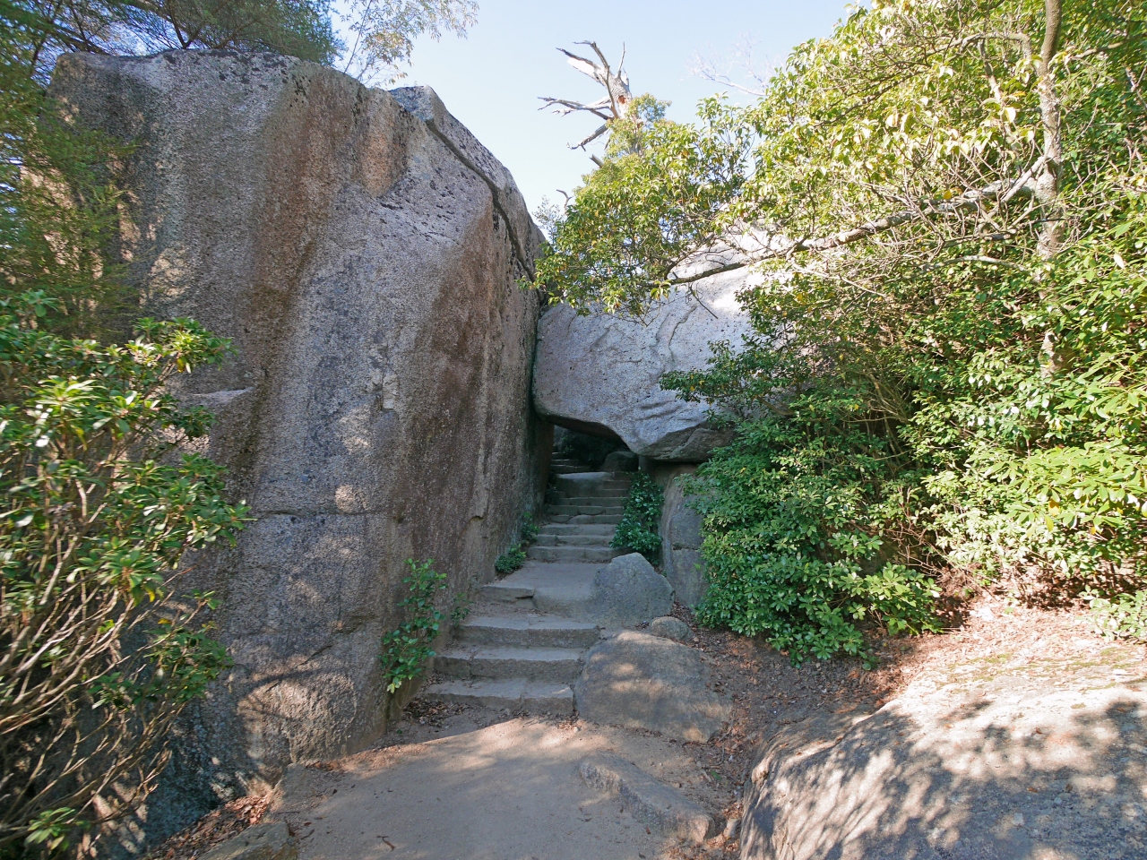 このロープウエィ 最初が循環式 榧谷駅で 交走式に乗り換える 循環式は1分おきに8人乗車 スキー場などによくあるもの 8人乗りというが,旧日本人サイズ.大柄の欧米人だと6人でもきゅうきゅう.紅葉のシーズンなどの休日は非常に込んで並ぶが,目安は階段の下で40分あまりだ.小さいが確実に運んでいくので,思ったより待つ時間が少ない