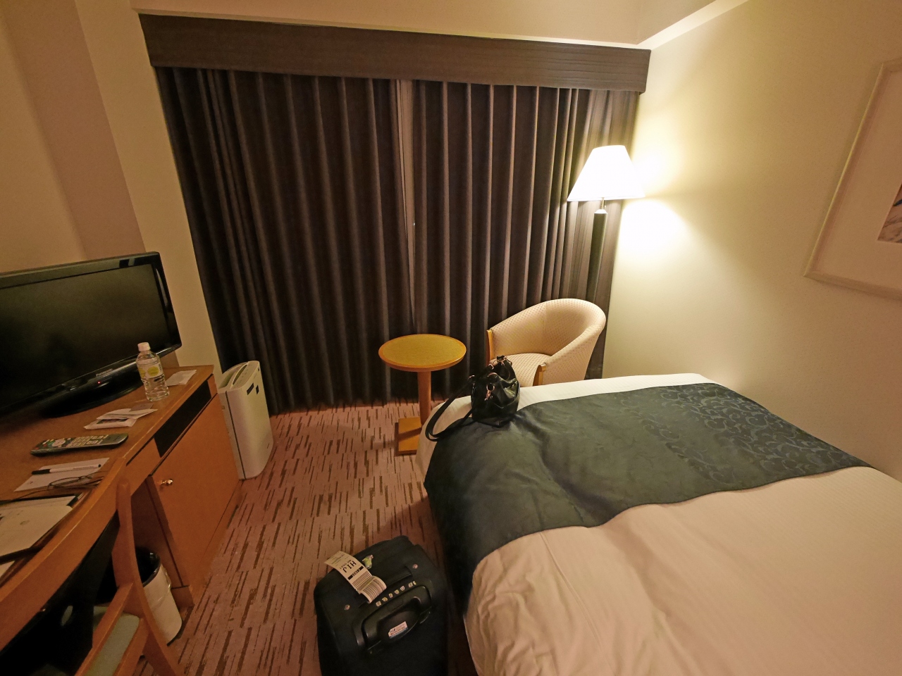 場所がいいので13500円と割高.シングル2つで宿泊したが,ビジネスホテル並みの狭さ.風呂もシティホテル水準から言えば少し小さめ,朝食もあまり質が良くなかった.せめてもの救いは目玉焼きを(オムレツではない)その場で焼いてくれたことと,焼き立てのパンがあったこと.便利でなければ再びの予約はためらうホテルだった.以前にも宿泊した事があるが,その時は良い部屋だったが.(ツインのシングルユース)
