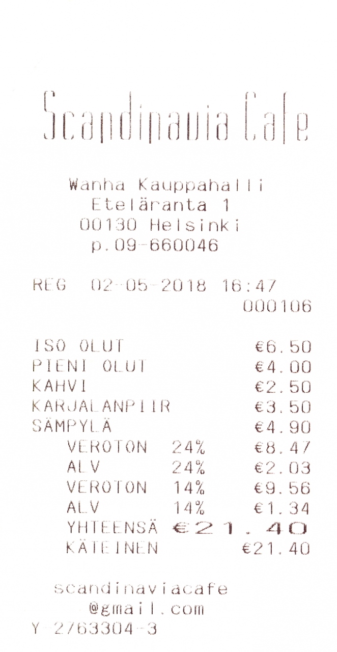 ここのScandinavia Cafeのウエイター人形はちょっと不気味だがカレリアパイは美味しい,スープキッチンが少し値上げしていた
