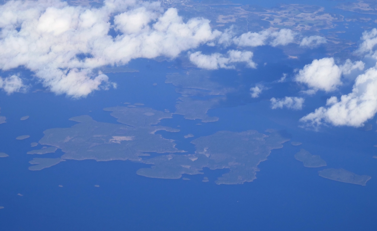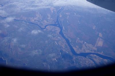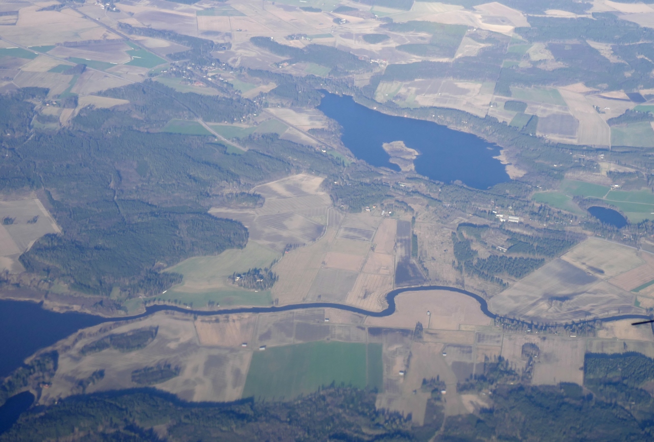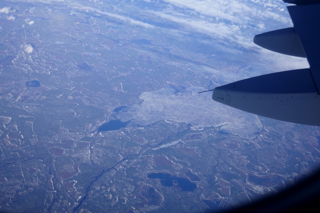 フィンランドらしい風景はなんといっても湖だが,このフィンランド航空のヘルシンキロヴァニエミ線は晴れると,ユヴァスキュラを過ぎたあたりからPijanneの大きな湖がみえる.ヘルシンキの郊外が駅の付近を除いては森の中か牧草地の中であることも良くわかる