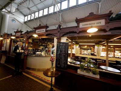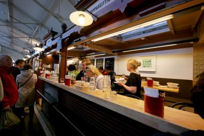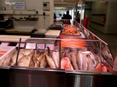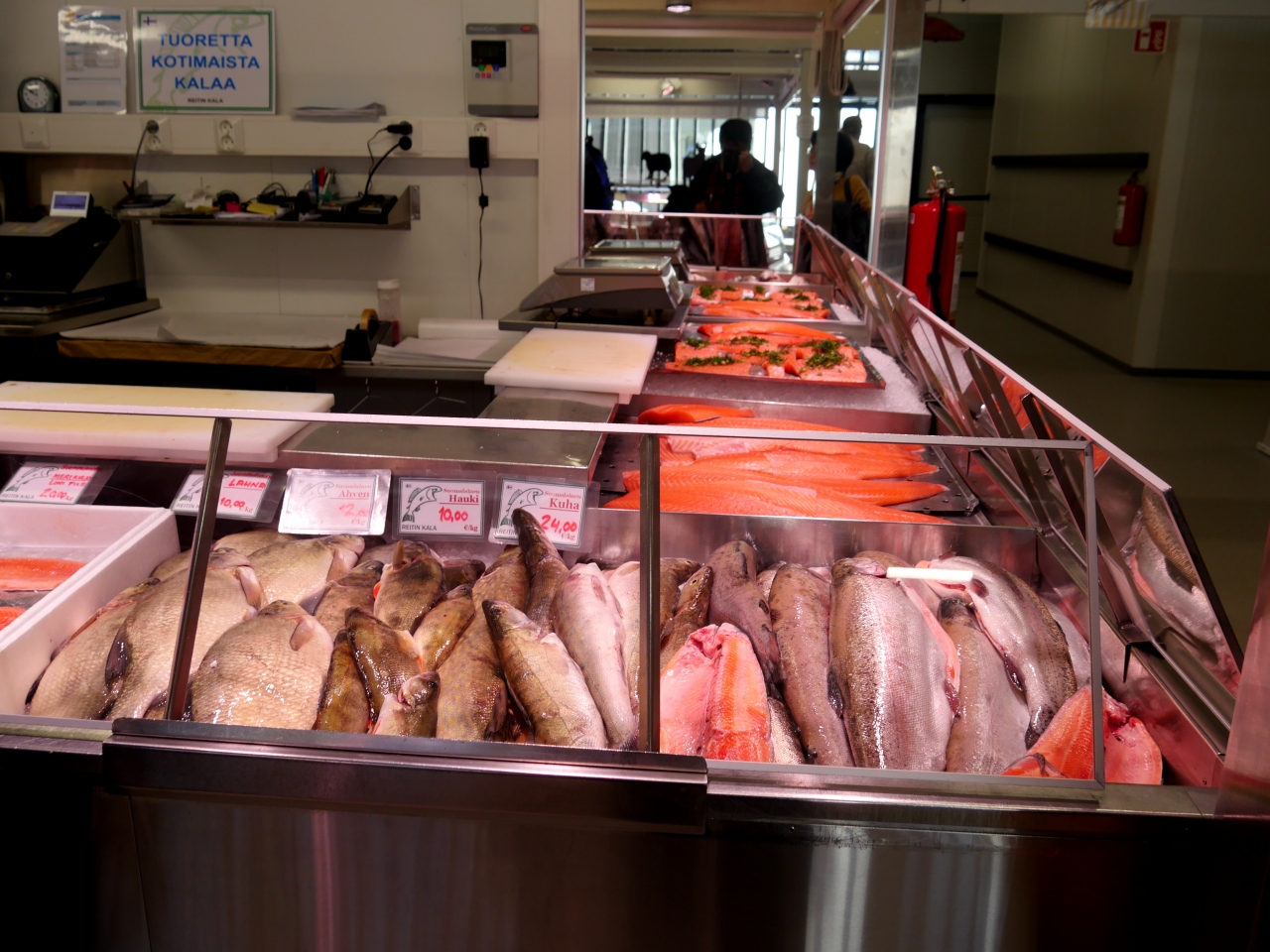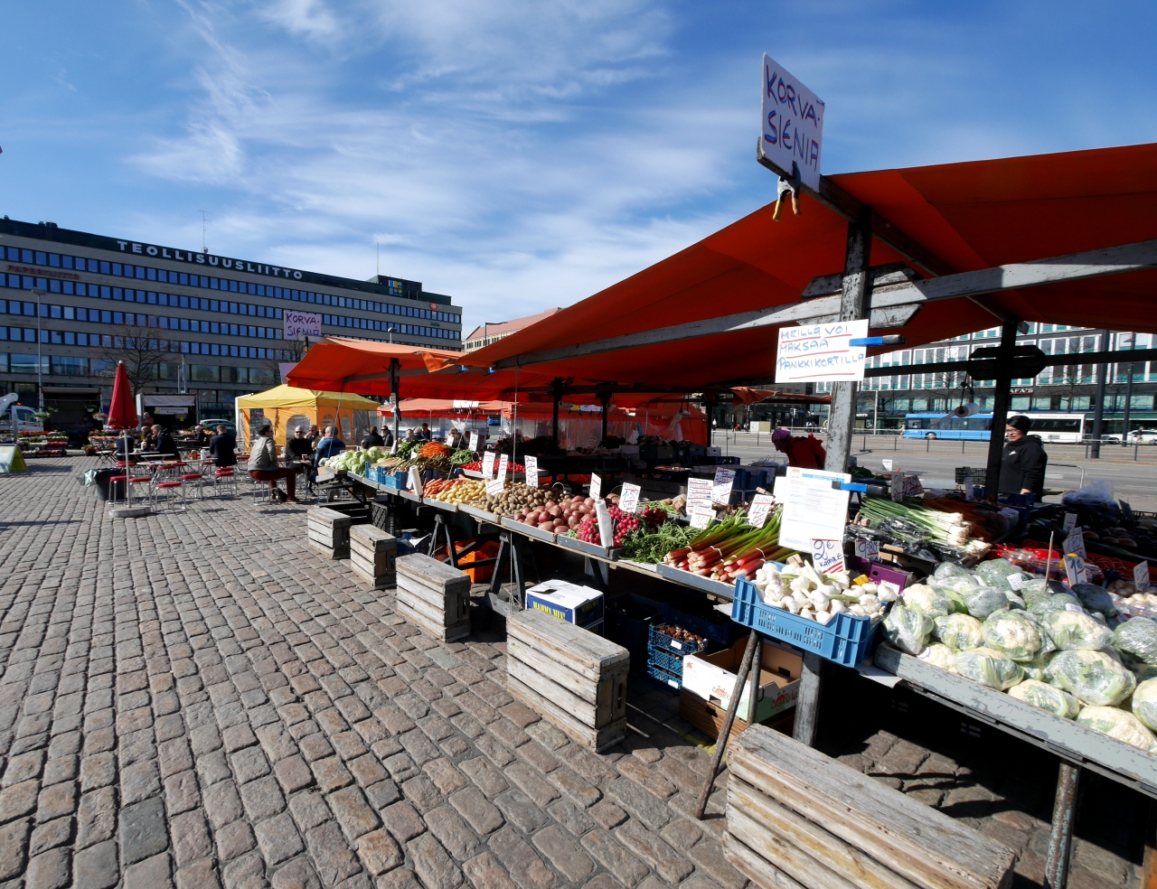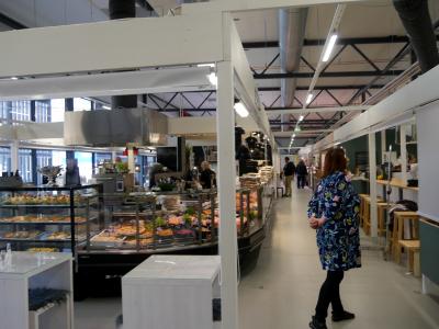 新しくできた建物 あのハカニエミ屋内マーケットのあの風情は全くない 広場で売る八百屋さんや花屋さんは昔通りではあるが 中は機能的 まっすぐの道の周りに区画になった店が並ぶ 手前にはカフェもあり,サラリーマンが朝食を食べていく 奥の方にはお土産屋がある.Kauppatoriよりも地元の人が使う割合が多い市場でおもしろい