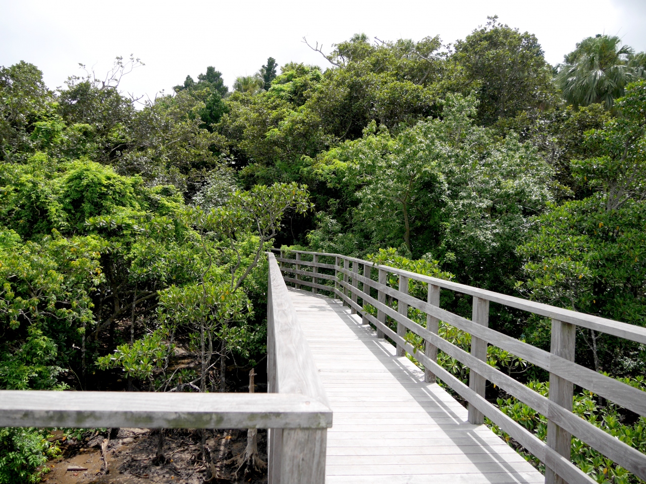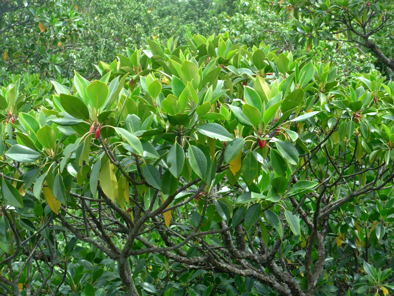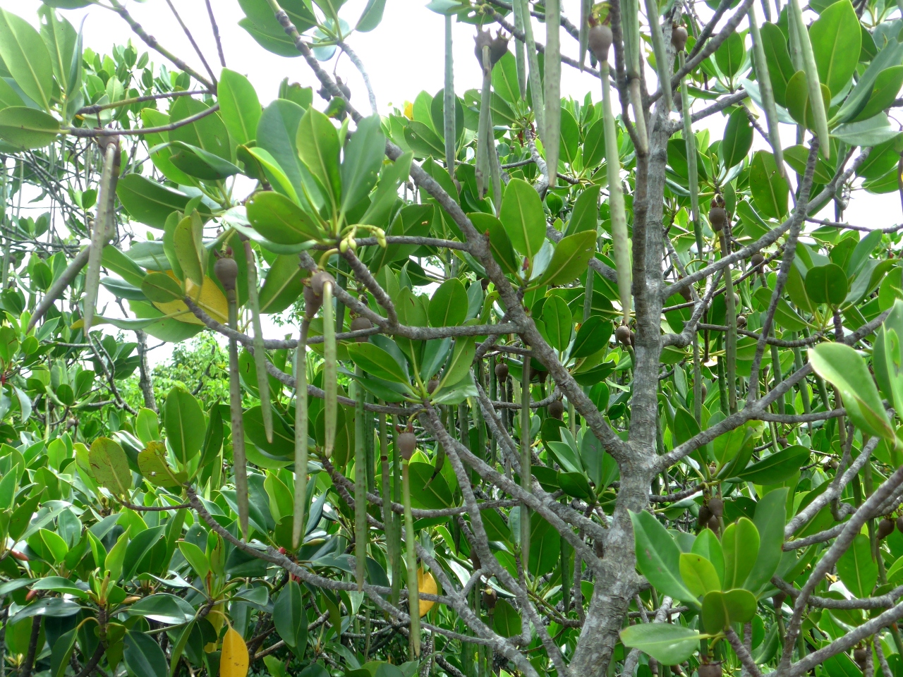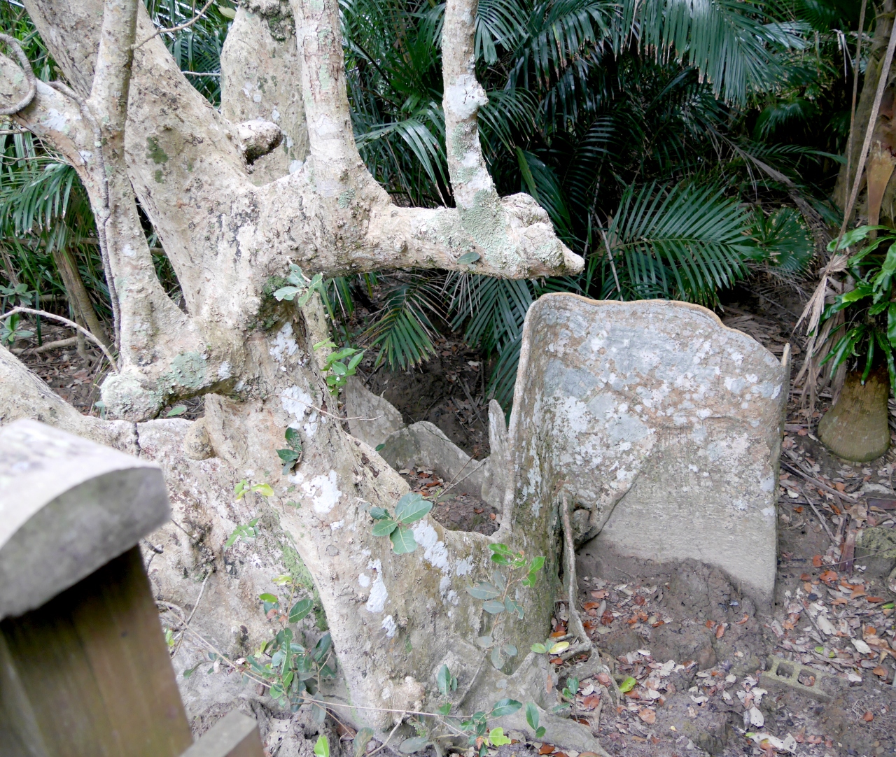 この群落 サキシマスオウノ木のみでなく,オヒルギやヤエヤマヒルギの群落もある.駐車場から徒歩1-2分の遊歩道を歩く.ヒルギ=マングローブの群落を見るにはとてもいい場所だ.サキシマスオウノキは板根を発達させる.見事だ.一見の価値あり