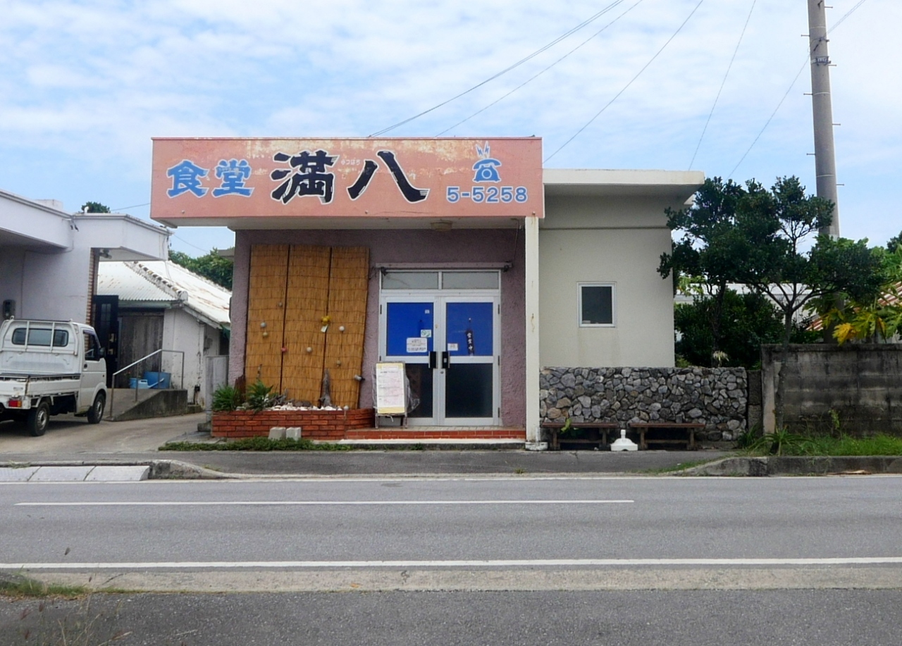 食堂満八によって腹ごしらえ.私はそば&ジューシーセット900円 八重山そばは黄色い麺で塩味だがおいしかった.400に昼食時は一度閉店する.1800‐2200にまた営業 タコライス950円 野菜チャンプルー定食950円 これはボリュームがある.周りに食堂が無いのでここで食べるしかないが,いいとおもう.迎えに駐車スペース 10000円札では支払できない.1000円札を用意する事