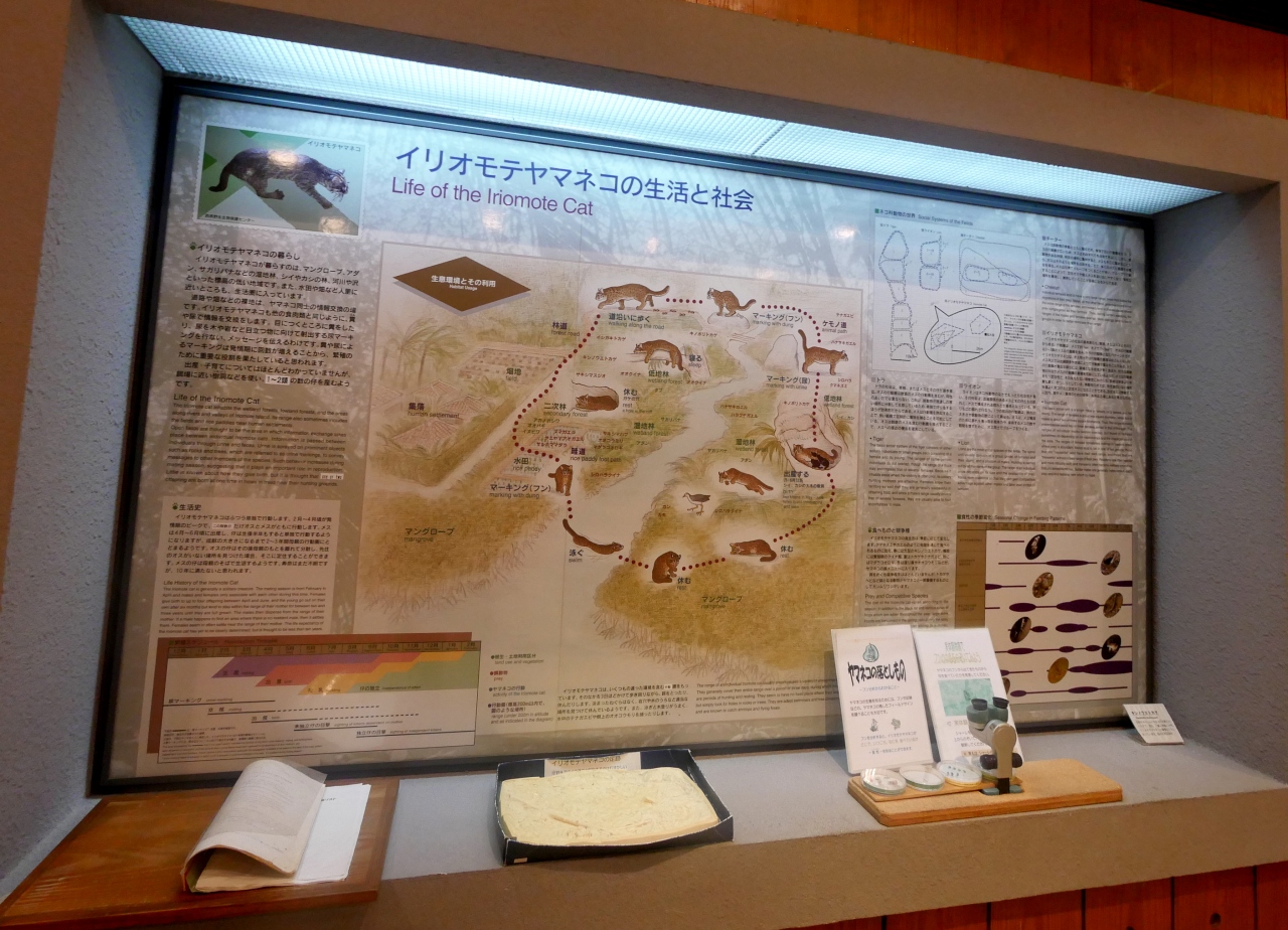 八重山の自然や風土を紹介しつつ,イリオモテヤマネコの生態を展示する.歴史では笹森儀助と八重山の話がおもしろい. そのころ西表島は貧しかったろうなあ 人頭税を廃止した偉人で有名だ このころの八重山はマラリアの天国だった.1957年に米軍がハマダラカの撲滅を図ってから,つい最近のことだなどということもわかる イリオモテヤマネコの生活と社会 わりと民家のそばで暮らす マーキングでの縄張りを形成する等を紹介 人のそばで暮らすので交通事故が絶えない.全体には割と大きな展示室だ.なかなか面白かったができれば生きたイリオモテヤマネコを見たかったが,そうもいかないよね