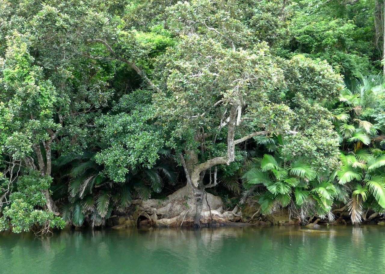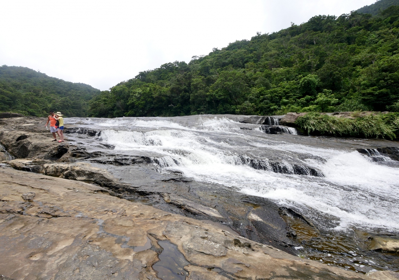 このジャングルクルーズはヒルギ林やサキシマスオウノキの板根が見学できるし,密林に囲まれた幅広い川がまるでアマゾンかのような雰囲気を醸し出す.しかしやっぱりジャングルをかき分けてはいるカンピレーの滝までのトレッキングコースは最高