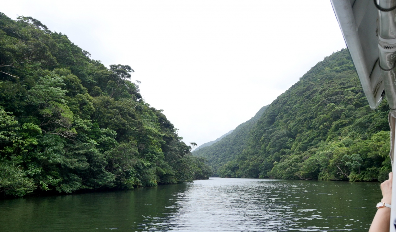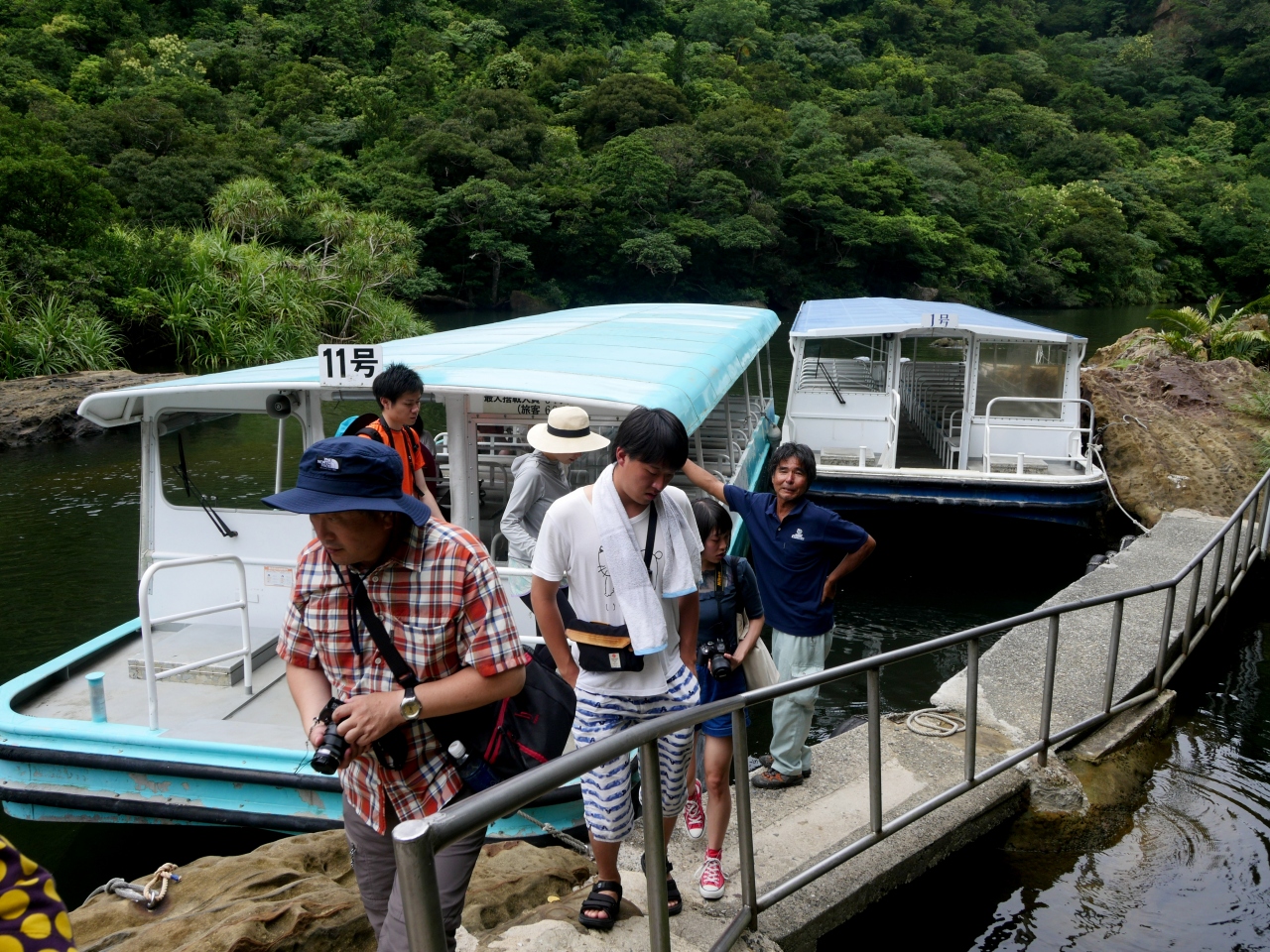 1430軍艦岩初のジャングルクルーズ船で,県道215号線近くの船着場に1458到着した.