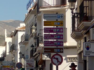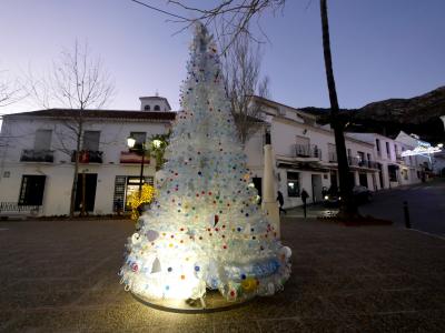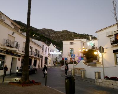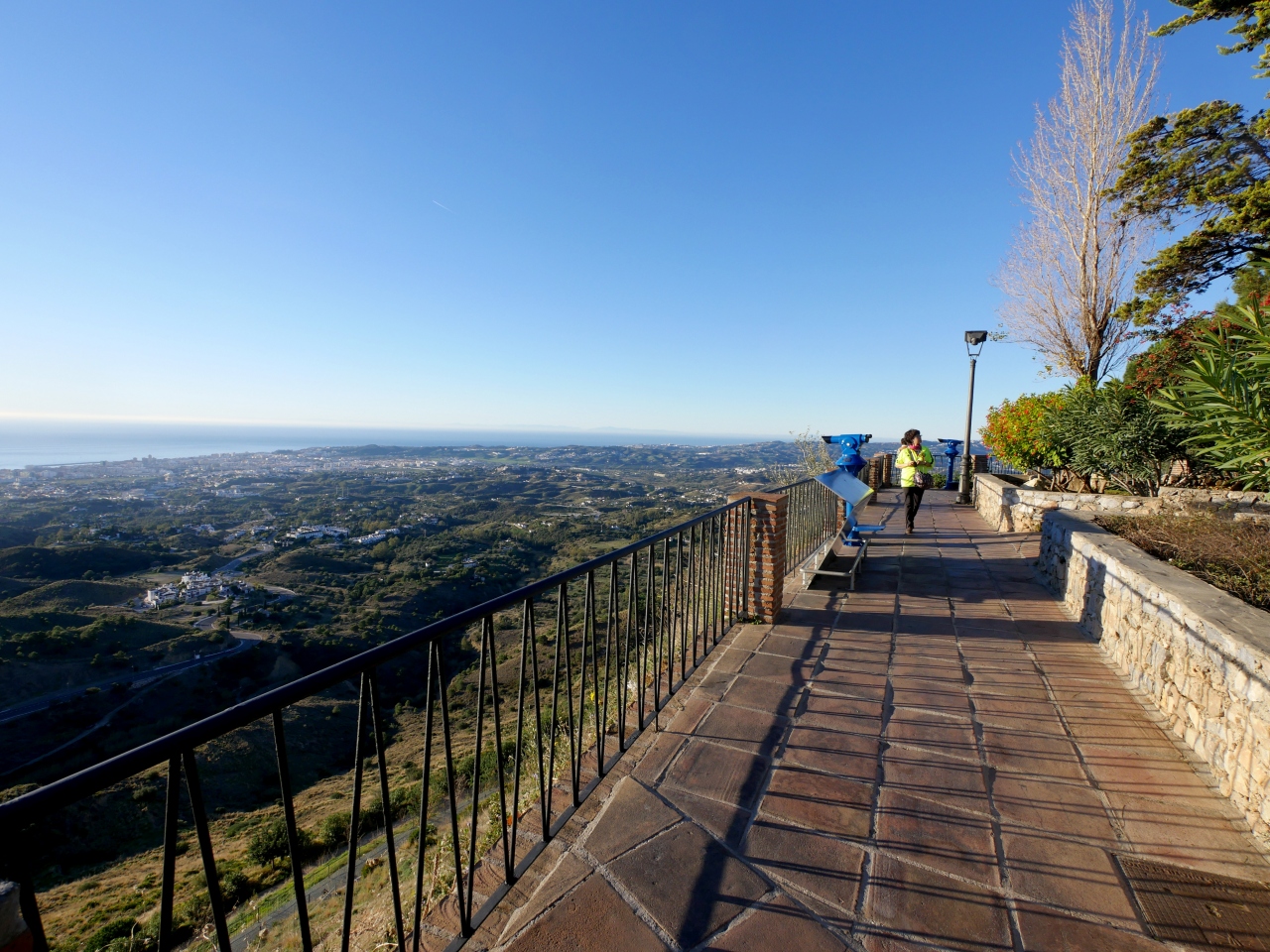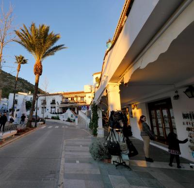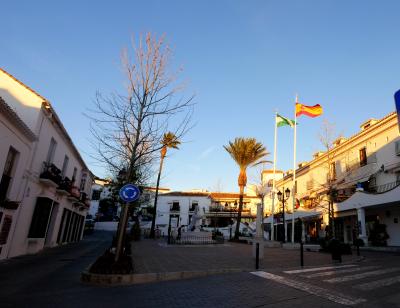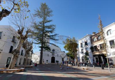 ミハスの中心の広場 冬はペットボトルで飾られたクリスマスツリーがある 土産物屋が多くまたすばらしい景色を展望できるなどとてもミハスらしい広場,下のVirgen de la Pena広場が近代的な変哲もない広場から見るとずっと魅力的だ