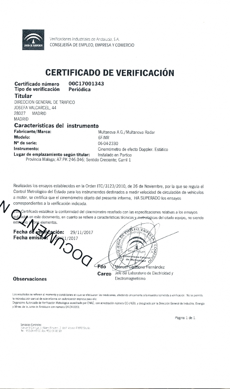 マラガからネルハに行く途中の A-7 IC 246Km 付近でオービス(レーダー)にやられた!80㎞制限を97㎞ わずか17㎞オーバー.日本の常識は通じない!1月30日にHERTZから違反したメール 照会料40ユーロ 罰金は100ユーロ(1か月以内の支払いだと50ユーロ)インターネットで調べたら,ちゃんと支払方法をガイドしていた旅ブログがあった.たすかった.即刻支払う.そうしないともうスペインでは運転できなくなる!