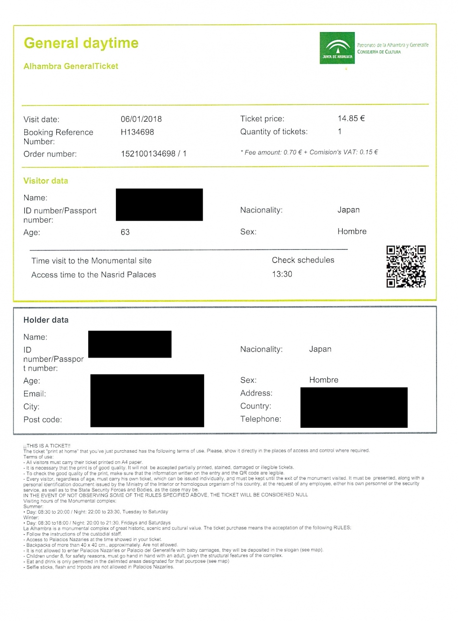 から購入した一般券 14ユーロに予約料0.75ユーロ+VAT0.15ユーロ で14.85ユーロ