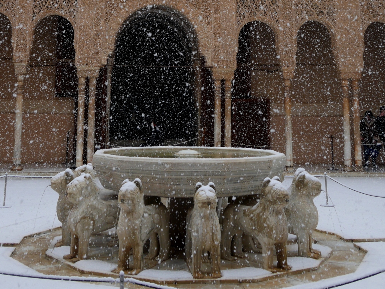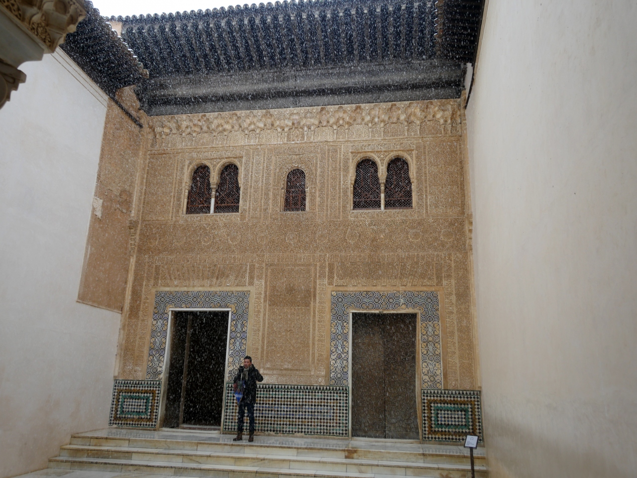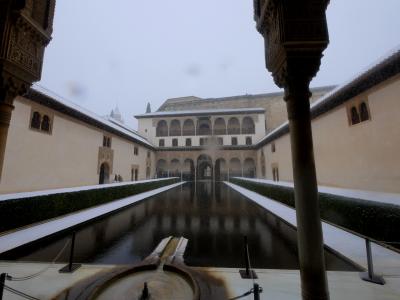 ナスル朝宮殿の前半部分 メスアール宮 コマレス宮 ライオンの中庭 ライオン宮,雪のパルタルの庭園と回る.雪の日だったがやはりすばらしかった.なおナスル朝宮殿は予約制 これは厳格で大雪が降っていても前倒しでは入れてくれなかった