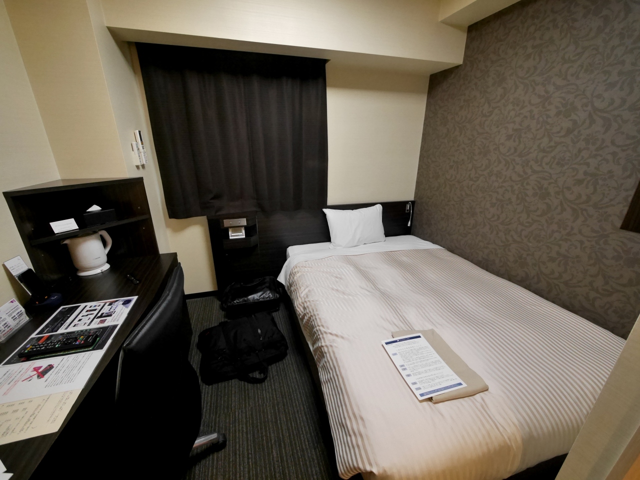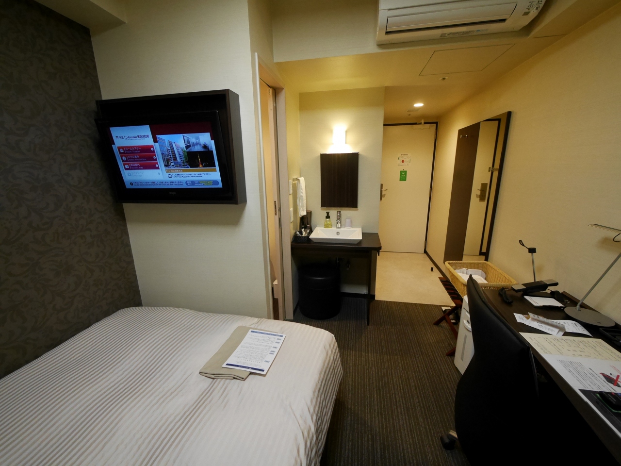 浜松町の駅から4分.3泊で41800円.(水木が14600円,金が12600円)若干高めのビジネスホテルだが,部屋はトイレと風呂が別々であったりユニークなつくり,若干狭めの部屋だったが落ち着いており居やすかった.枕などアメニティも貸し出している様だ.朝食もまあまあ.海鮮丼(蟹やネギトロなど)もあったり,基本的な食材はそろっている.しいて言うと,それぞれのビュフェの料理の盛りが少ないので,からになって催促する場合が多そうということぐらいか.東京でこの料金で宿泊できるところが少なくなっている中,まあまあのホテルだった.