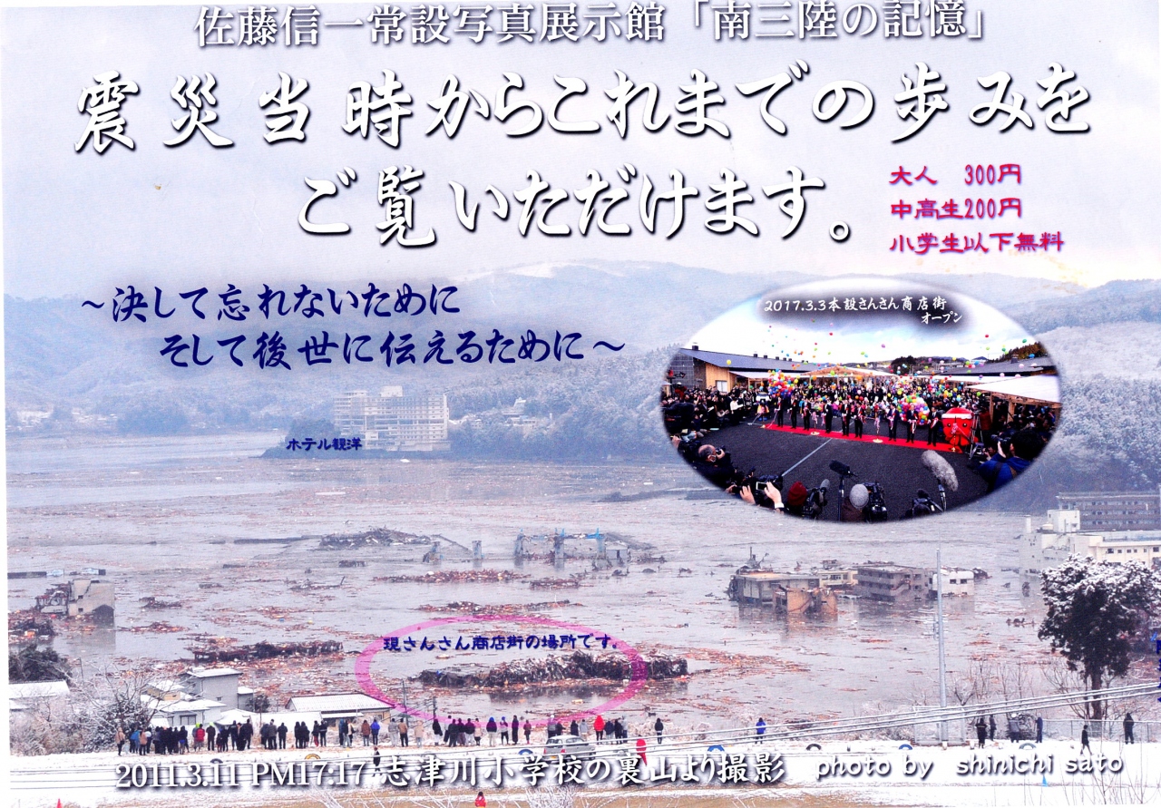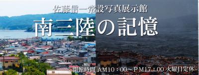 入場料300円 すごい.震災の津波の日を時々刻々と追って写真に収めている.呆然と立ち尽くす人々,流される家々.その後の復興と人々の笑顔.たくさんの悲劇的の写真を見たのに,悲しみや絶望よりも南三陸の人たちの復興への温かい気持ちが伝わってくるようだった,本当に今の盛土の中から,暖かい街づくりにつながってほしいと思った.