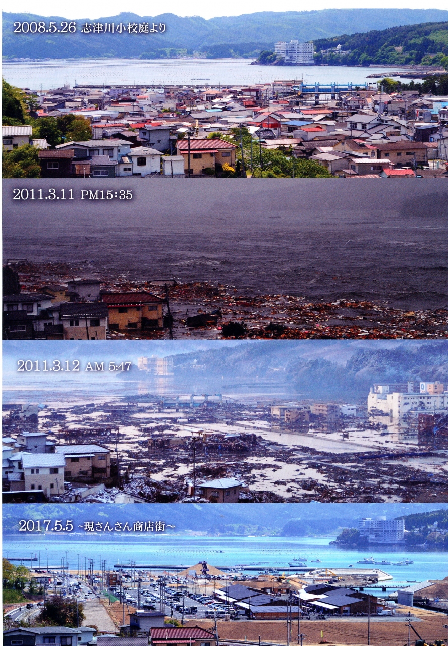 震災のボランティアの時,宿舎としたところだ.その時には建物にひびが入っていたり,2011年4月7日のM7.2 松島町では震度6弱の余震に見舞われた.津波警報の中を裏の高台の駐車場に避難.夜は停電し,一日強,断水だった.ホテルは食料が十分手に入らない中で,普段とはずいぶん違うものの,心づくしのことをしてくれた.そして本震はこの3倍くらいの大きさだったと聞いた.