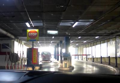 レンタカーの場合,駐車場は広いが,必ず駐車券を自動機械で精算してから出庫バーにいくこと