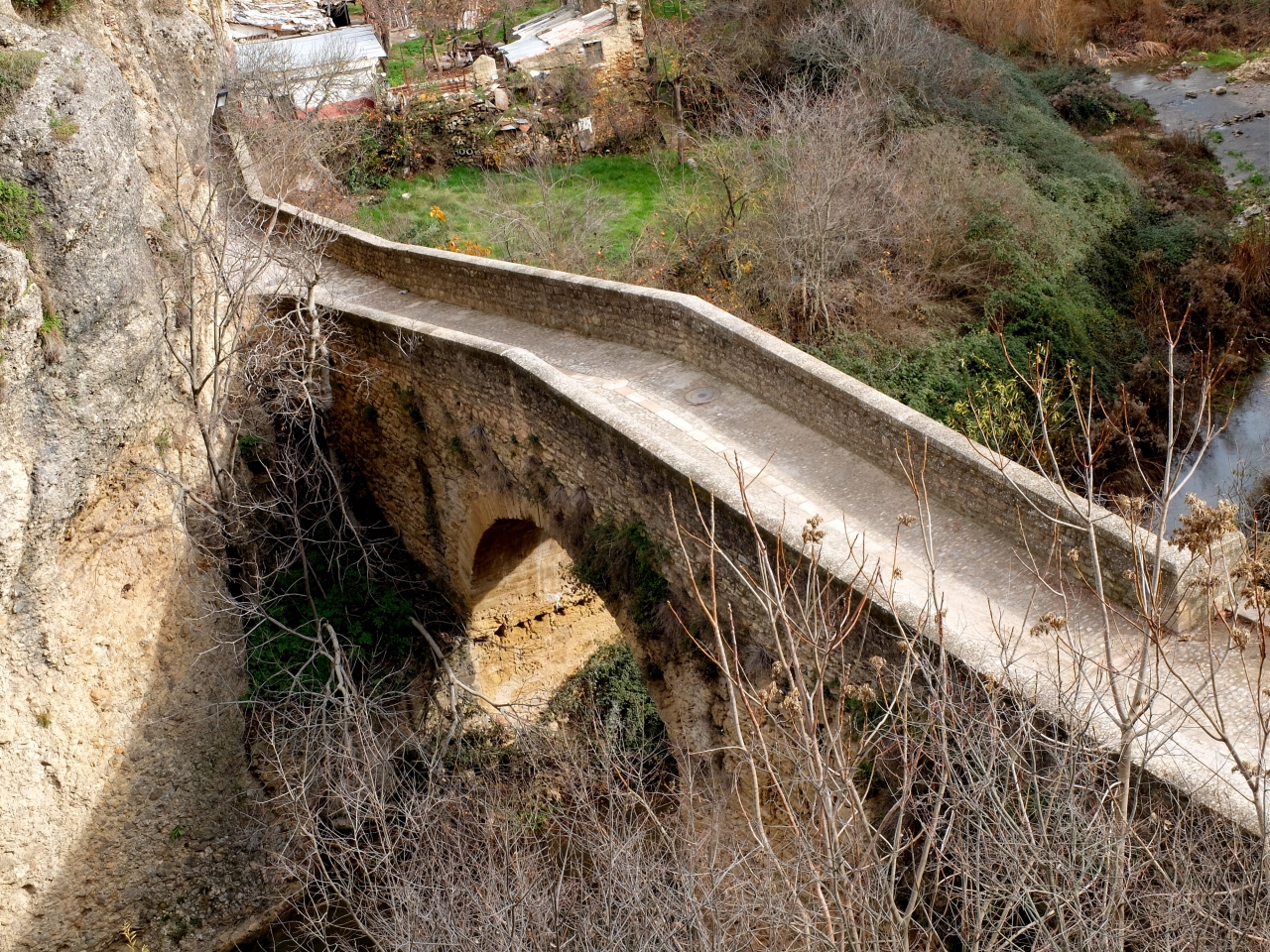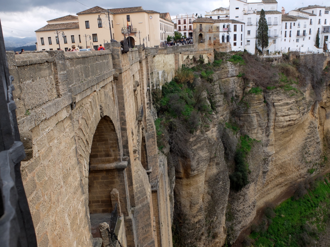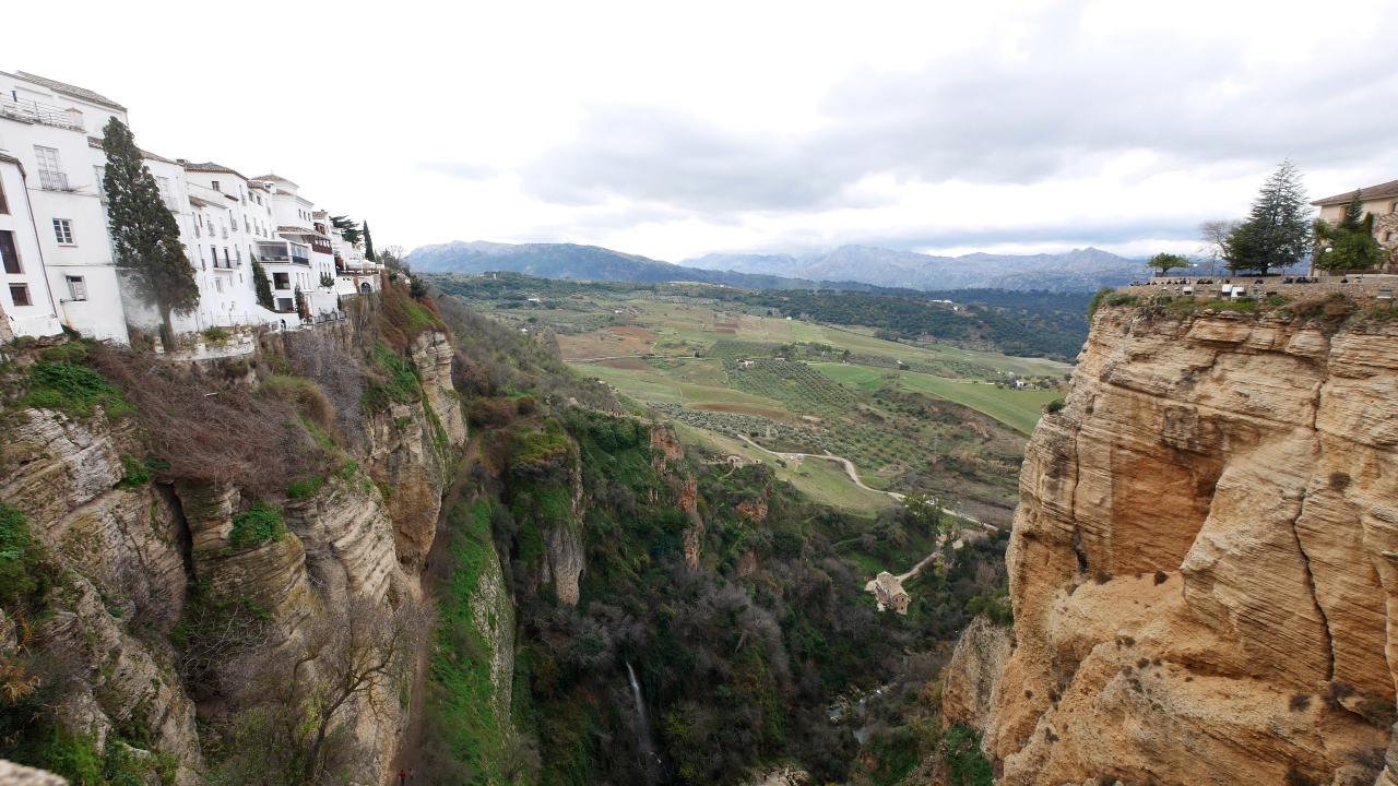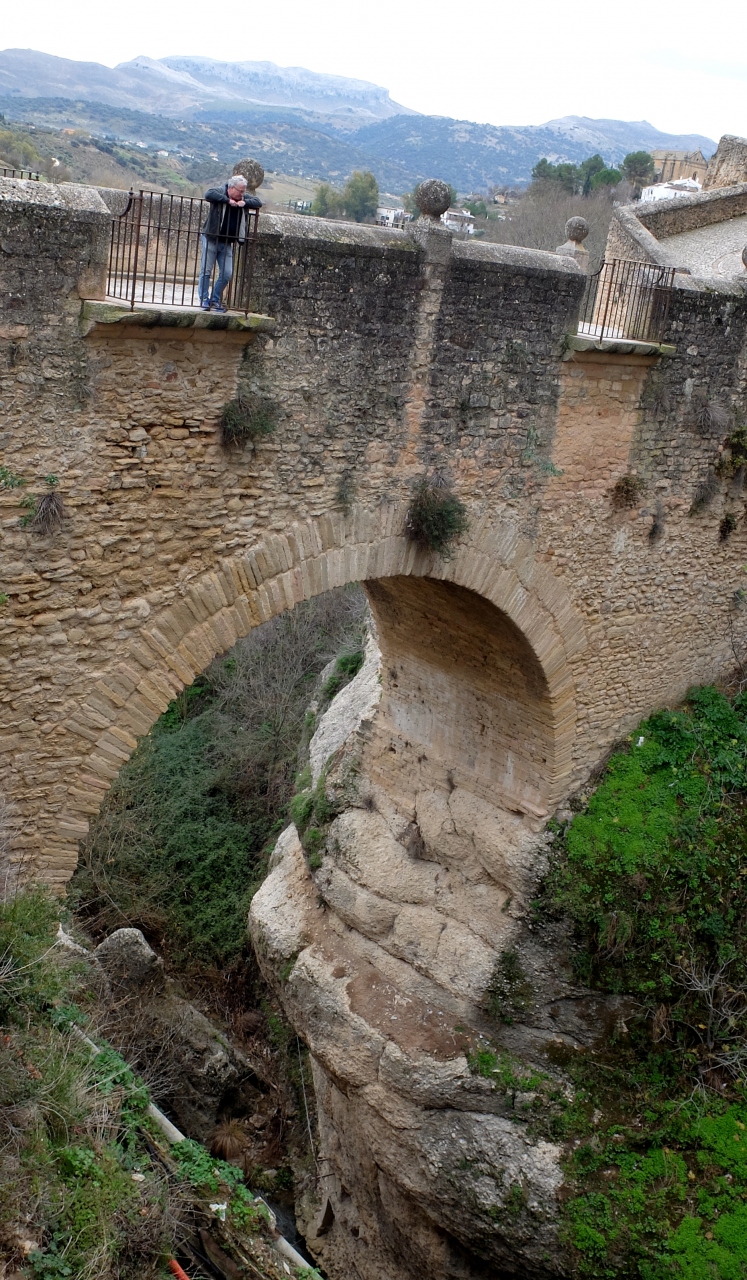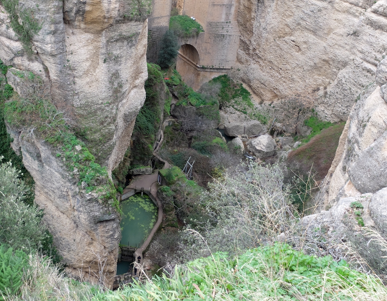 高さ100m 絶景が広がる 良くこんな橋を作ったものだ 下に流れるGuadalevin川沿いにはのどかな農村風景と滝,空中に都市があり,地上には農村というイメージ ラピュタの世界だね あとで下に降りてみて眺めるとすごい!手前(闘牛場側)のJardines De Cuencaという公園側に降りるとよい