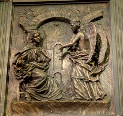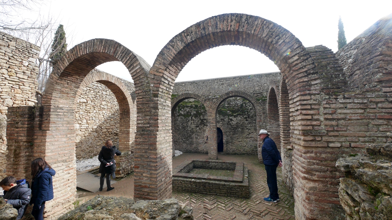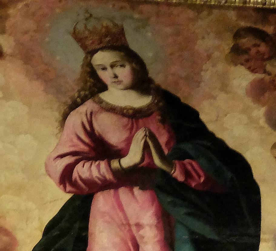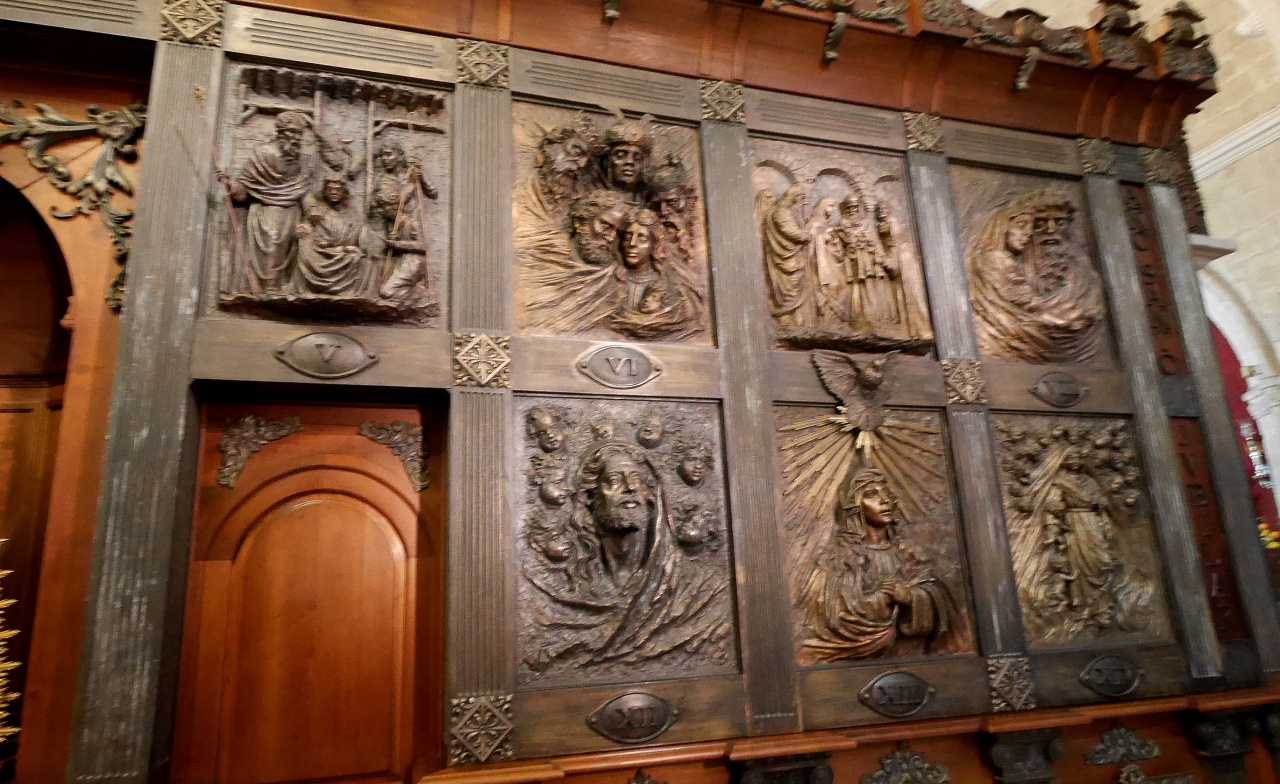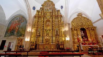 モスクの跡地に15世紀に建てられた教会 鐘楼はミナレットを改造 バルコニーが素敵な教会 ここはこのあたりで一番高い処だったのでローマ時代からの遺跡,9世紀にはモスクがたてられたとのこと バロック式の祭壇 マリアの生涯とその家族のレリーフが素敵な教会だ