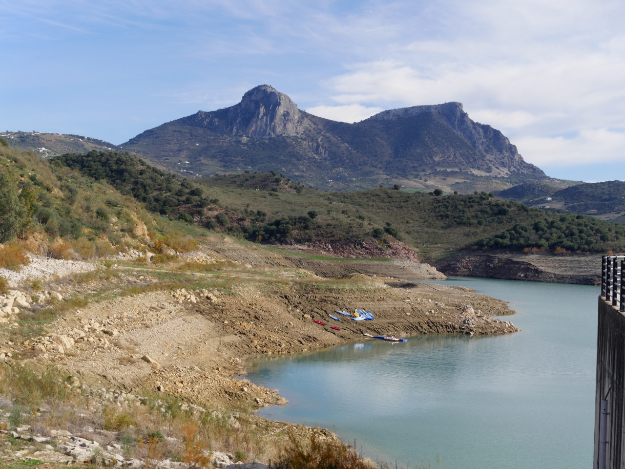 Zahaka de la Sierraの白い村を一望したくて,Zahara el Gastor貯水池のダムまで行く.ここからは街全体がよく見える.今回は訪れなかったがここの景色を見たくて寄り道した.Lagarin 1068mの山も美しい