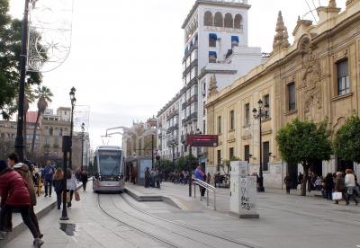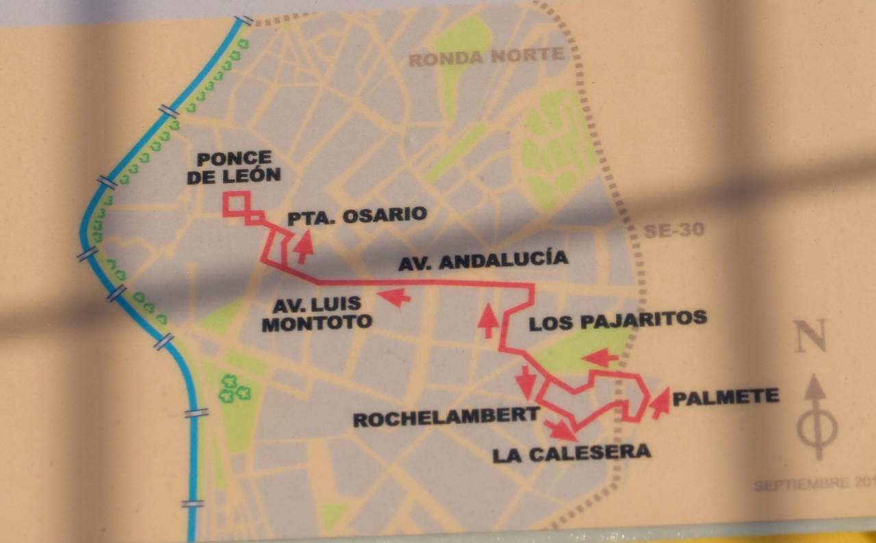 24番24番バス Ponce de Leon-Palmete線バスに乗った.Estrecho de Magallanesバス停からPonce de Leon広場までなんと40分 料金は安く,1.4ユーロ.この交通網 略称をTUSSAMという Urban transports of Seville Municipal Corporation がスペイン語ではTransportes Urbanos de Sevilla, Sociedad Anonima Municipal