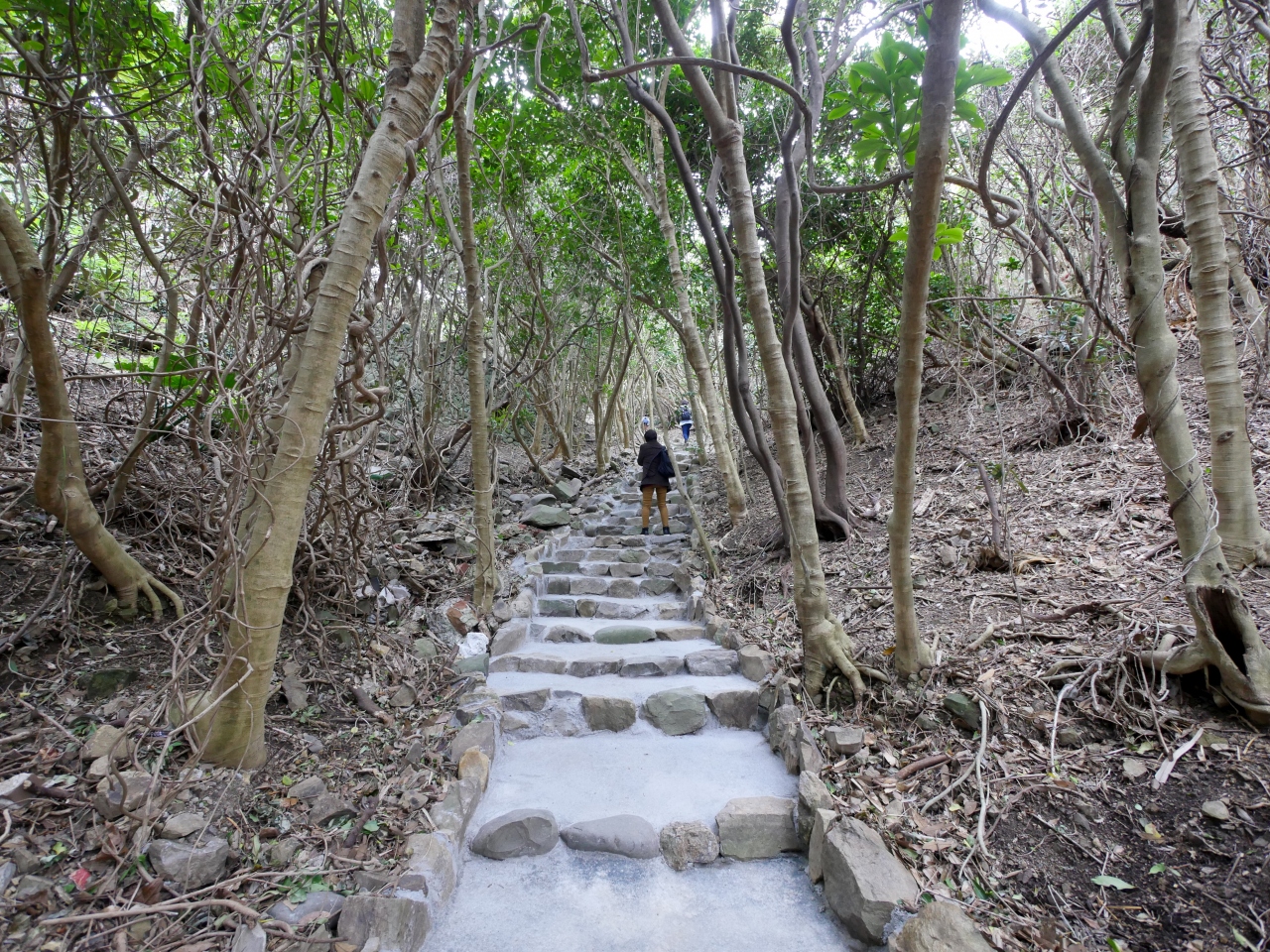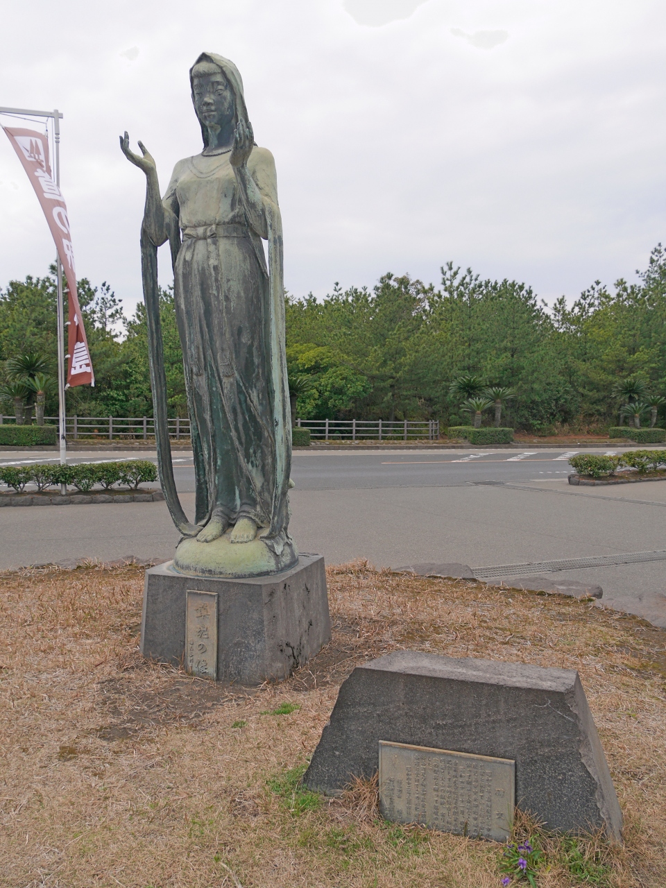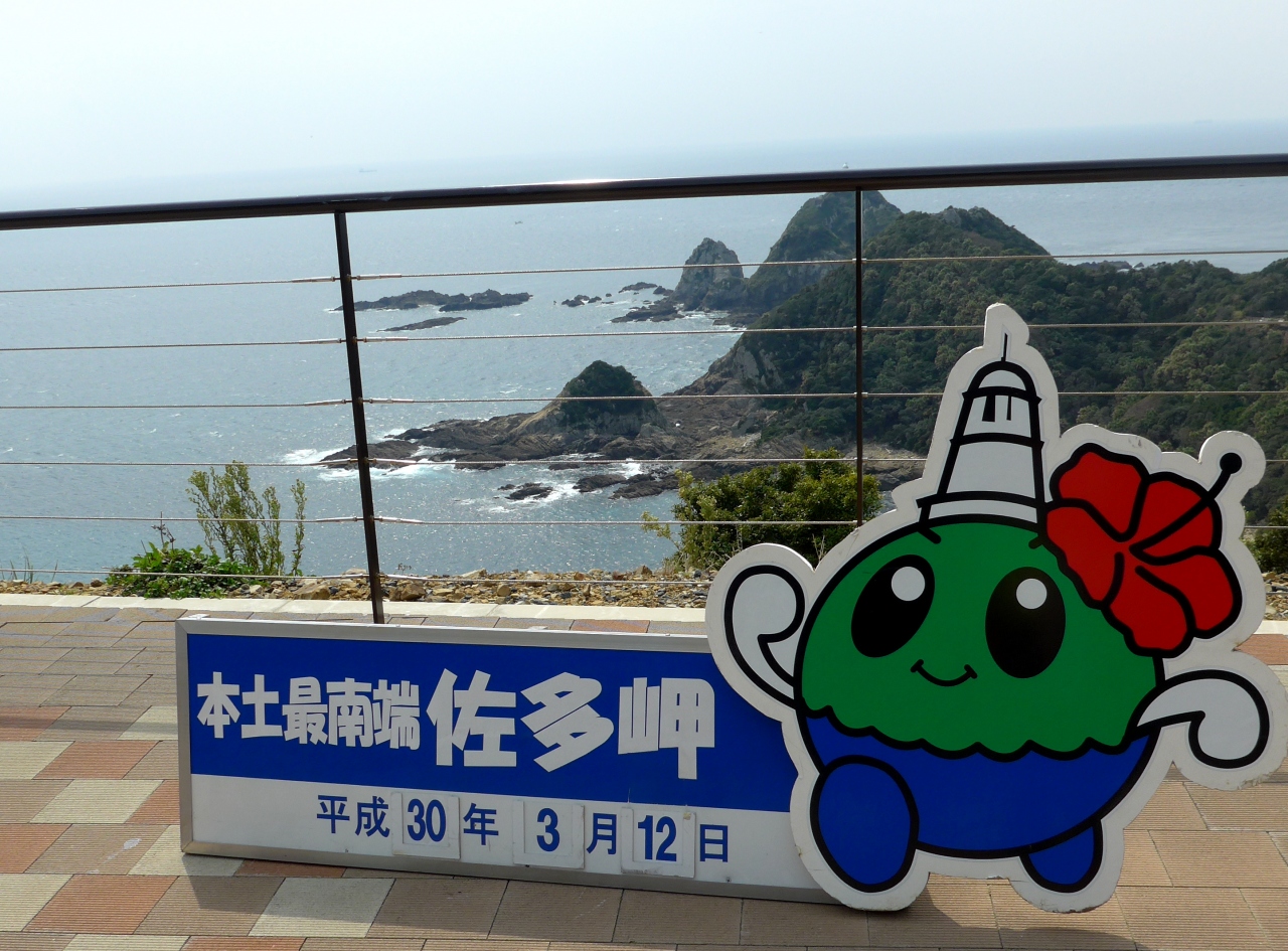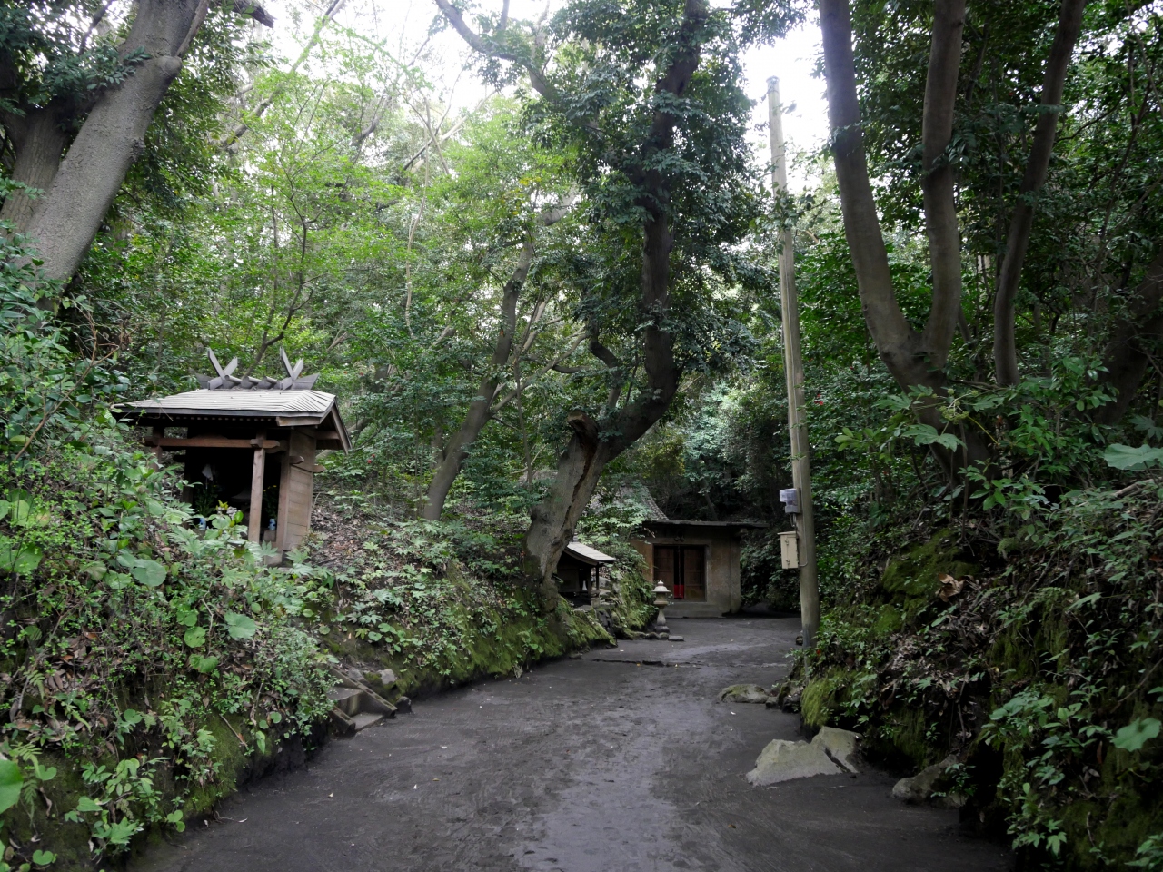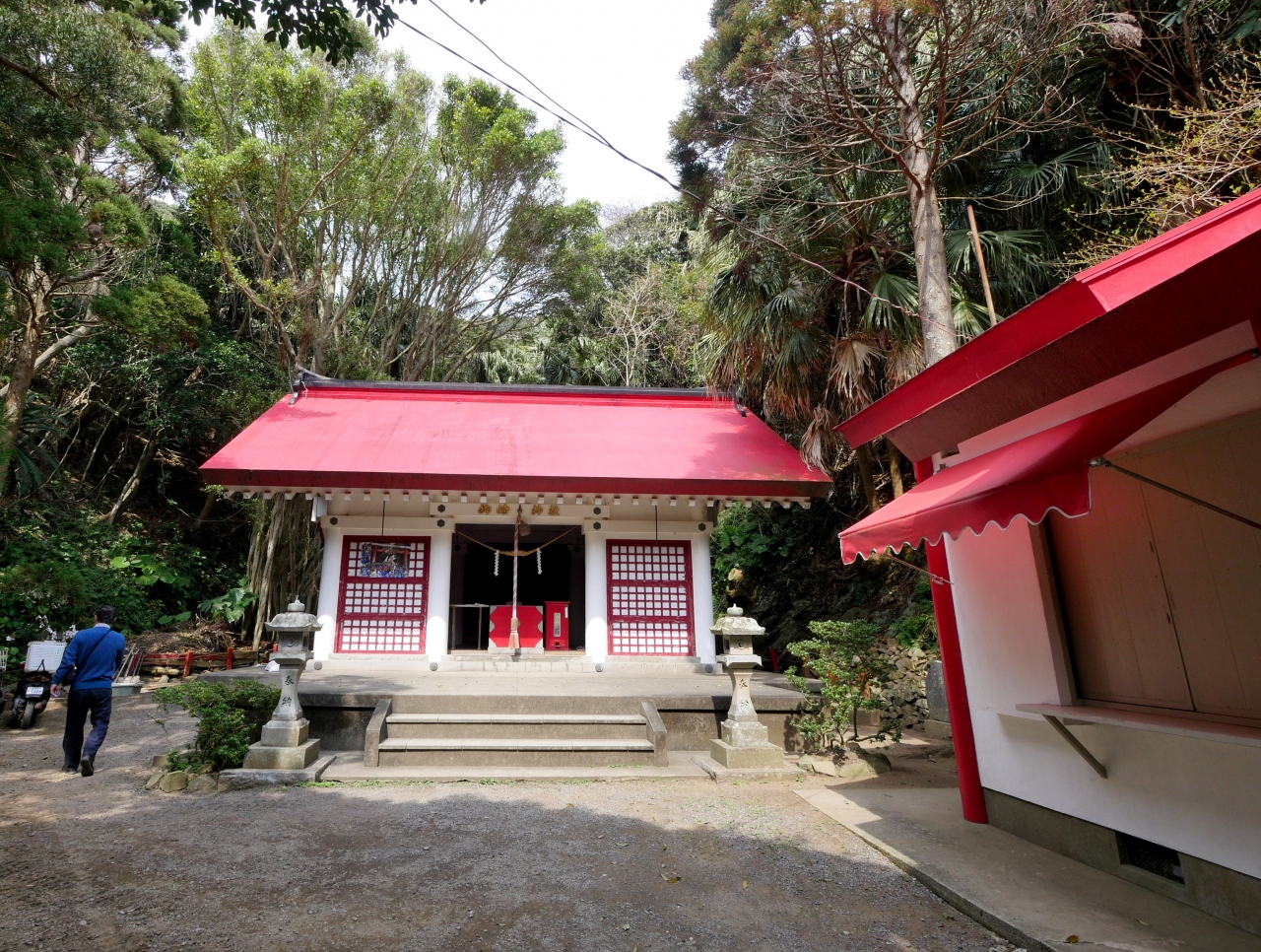 佐多岬の駐車場,観光案内所から歩行者用トンネルで4分.出たところに神社がある.7-8世紀からの古い神社だが,今は簡素な拝殿があるのみ.しかし神社から下の階段の周りは蘇鉄や,亜熱帯性の樹木でうまり,さながら沖縄のようだ.現在佐多岬は工事中で高齢者だとここから15分の上り坂はきついと思うが,少なくともこの神社までは来るべきだ