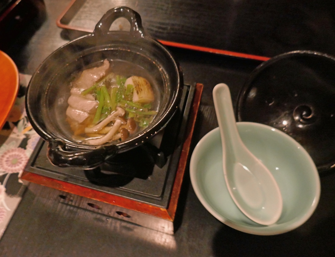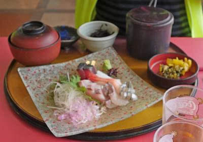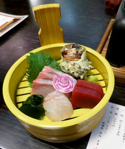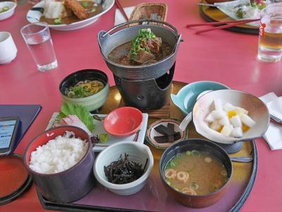昼食を食べた 「お造り定食」税込1450円 マグマカレー 1400円 私は西郷どん定食1800円 黒豚なんこつだったがなんと鍋がぬるかった!!そのためおいしくなかった!文句を言おうと思ったが,後の二人がほぼ食べ終わっていたので我慢した.この定食,固形燃料だけで温めるのに無理があると思った 残念!