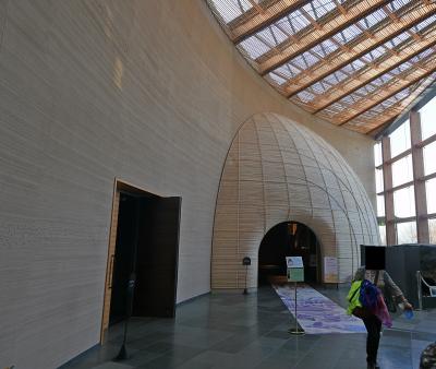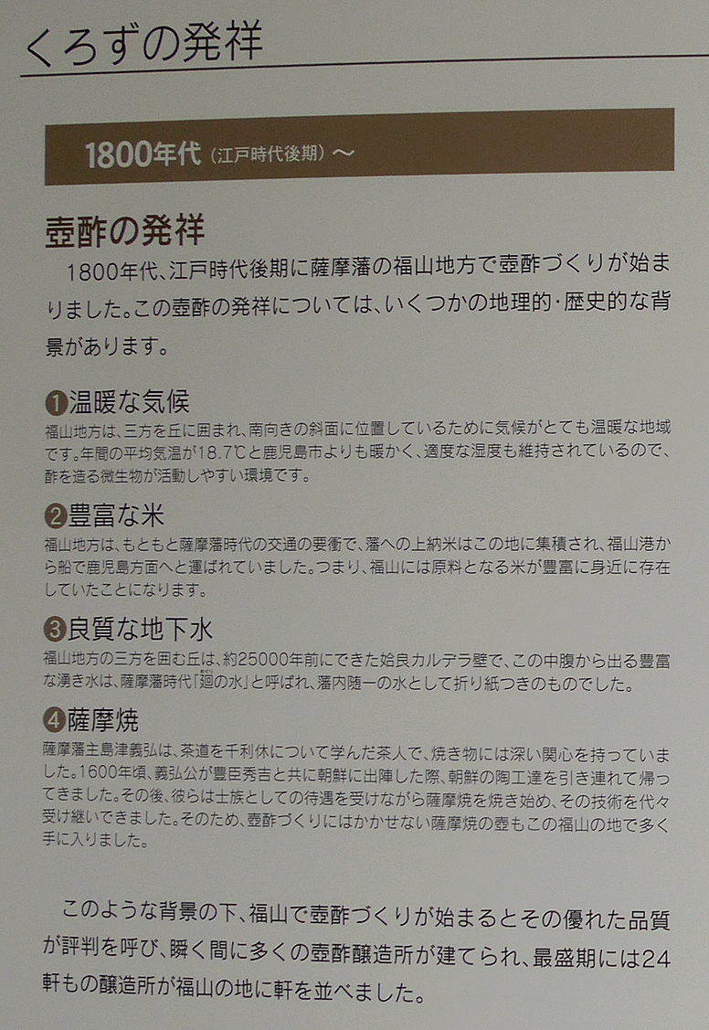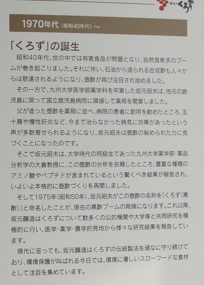 斬新なデザインの建物だ.壺酢を「くろず」として,大学病院の門前薬局で売ってヒットしたとのこと.その歴史を知ることができる.壺が整然と畑のように並んでいる光景はなかなかのもの.レストランもあるようだ.「くろず」をおみやげにしてもいい