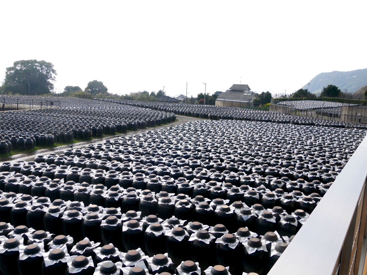 黒酢の歴史を知ることができる,壺が整然と畑のように並んでいる光景はなかなかのもの.