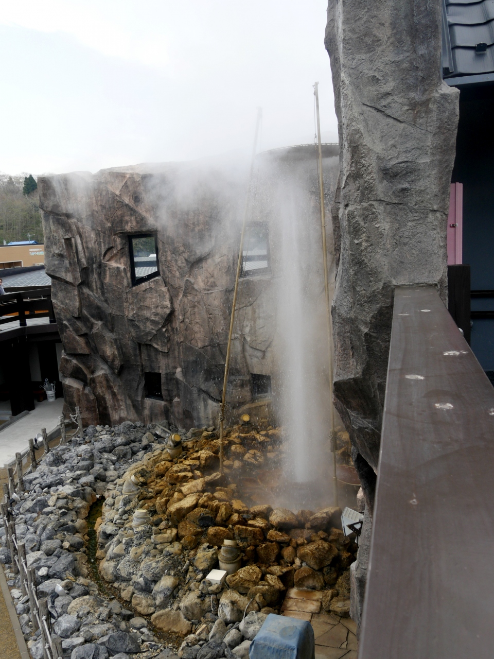 入場料300円 ここの間歇泉 11-12分おきだが,なかなかすごい.15m以上だ!一見の価値がある.まず正面から間歇泉を見学した後,眺望の館の階段にのぼって,見学するとパイプから間歇泉が噴出するところをみることができるので2回見たほうがいい.また道の駅では,たらこ御膳などの食事や昆布などのお土産も買うことができる.