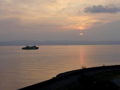 泊目はホテルアザレア 和洋室で一人18500円 部屋は広く快適 和室がなかなか良く,洋室は展望抜群.フェリーの往復と夕日を見ることができる.
