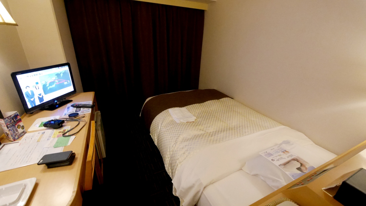 .ANAホテルと同様やや駅から遠い.荒町電停前だ.1泊シングル10500円.部屋はこの種のホテルとしてはまあまあ.風呂はシティホテルクラスの大きさ.朝食は種類も多く,氷見うどんや甘エビもあり,なかなかのバラエティ.満足できるものだった.今どきの土曜日この料金なら泊まってもいいホテルと思う.
