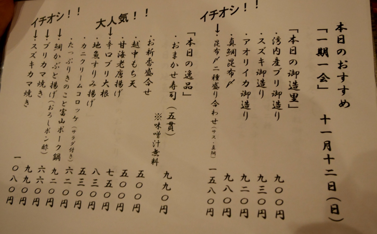 一人4000円程度 富山の酒は美味しいなあ- 旅行時期