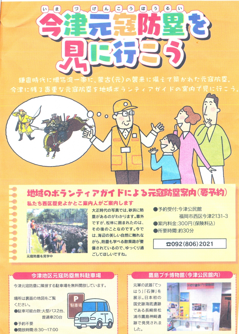 今津の元寇防塁を見学に緑町集会所の駐車場に..ここは防塁を200mほど復元している.高さ3mは当時の人々からは結構高かったろうと思う.騎馬でも乗り越えられなかったろう.復元以外にも地中にある防塁が所々覗いていた.分担させてつくり,つなげたとの事で途中が少し曲がっているのも,ご愛嬌だねとおもった.(当時の武士たちは切迫していたと思うので少し失礼かな)史跡広場のインフォがビデオ付きで充実しているのに驚いた.よくこわれて作動しないことが多いが,ここはちゃんと作動した.ここの海岸もきれい.毘沙門山がアクセントになる風景だ!