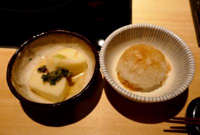 2016年4月にはランチを食べた店だったが今回は夕方.昆布〆ニ種もりなどおいしかった.なによりいろいろな地酒を飲めるのがいい.羽根屋純米大吟醸50 翼など,ワインよりずっとピュアな味でおいしい.お通しに日本酒付きでびっくり