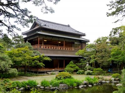 「旧斎藤家別邸に 豪商齋藤家の四代齋藤喜十郎(庫吉1864~1941)が、大正7年(1918)に別荘として造ったものです。 砂丘地形を利用した回遊式の庭園と、近代和風建築の秀作といわれる開放的な建物は、大正時代における港町・商都新潟の繁栄ぶりを物語る文化遺産です。戦後この邸宅は進駐軍による接収を経て、昭和28年(1953)には加賀田家に所有が移りました。時代が移り平成17年(2005)、所有権の移転や解体の可能性などの話題が聞こえてくるようになり、保存を願う運動が市民有志によって起こされました。 署名・募金運動、市議会への請願などが実を結び、平成21年(2009)、新潟市はこれを公有化しました。http://saitouke.jp/rekishi/」