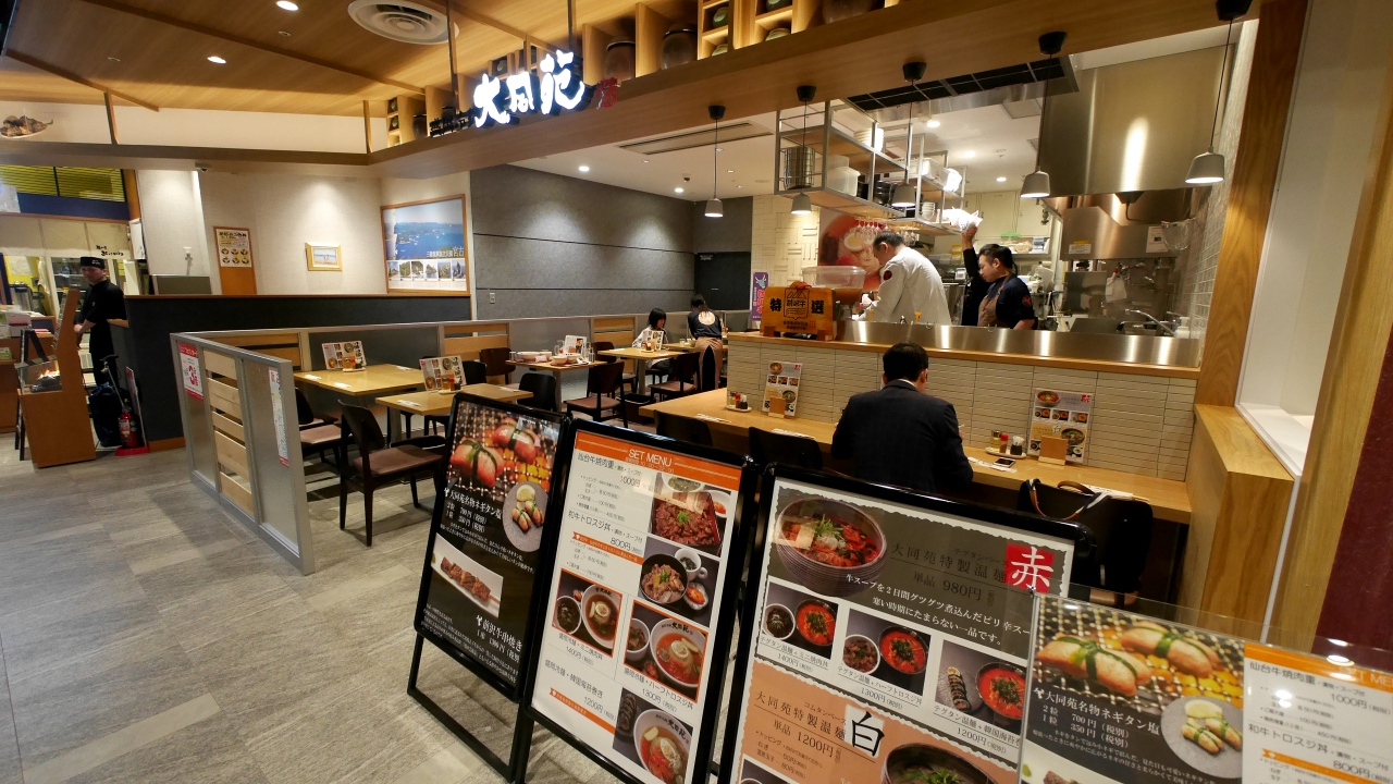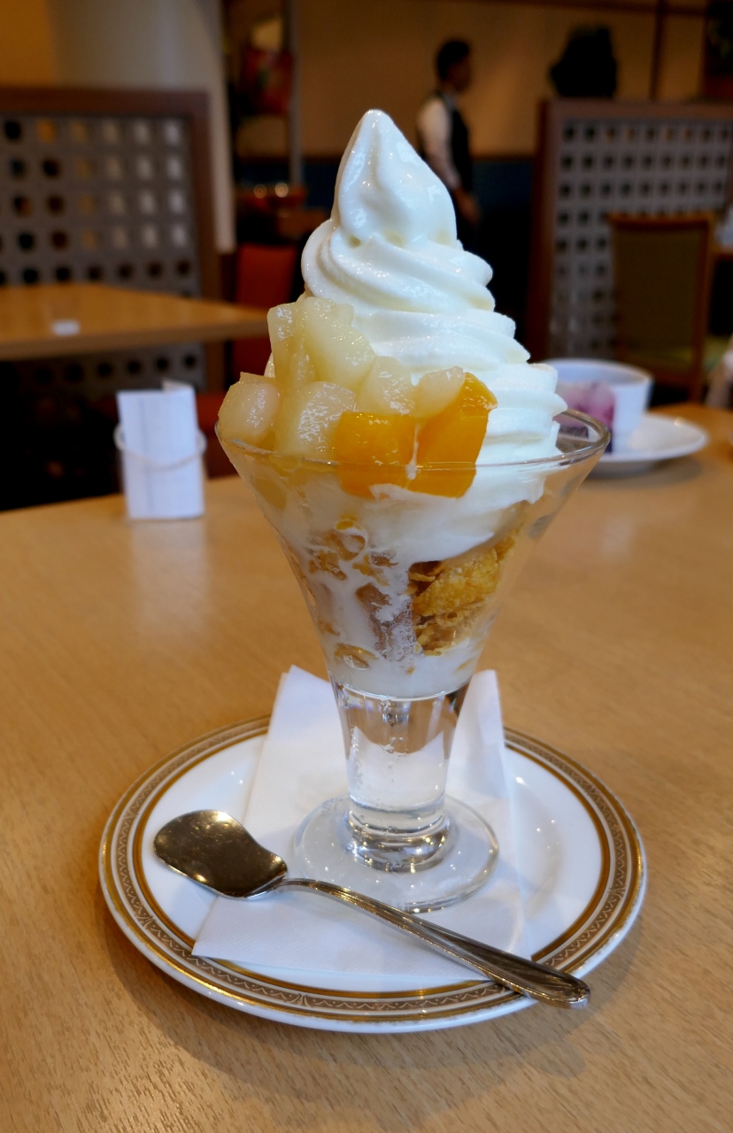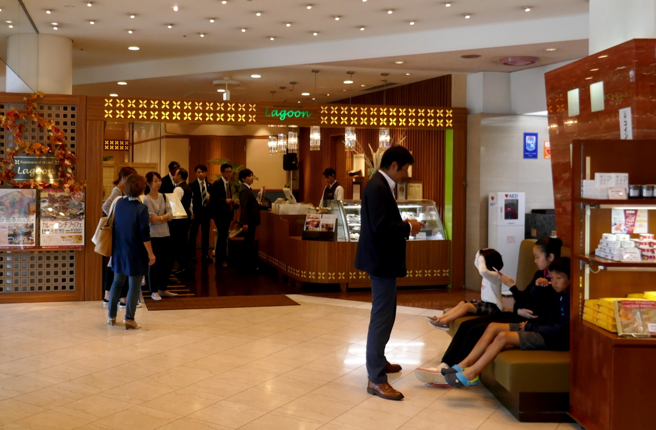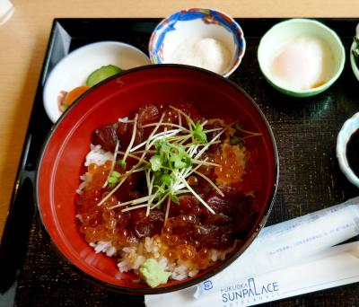 サンパレスのラグーンで.まぐろ漬け丼 いくらがのり,とろろ,卵付きで1230円税込とやすかった.このようなホテルや国際会議場の併設ではお勧めと思う.また翌日はパフェも食べた.喫茶としても使える.国際会議場の隣のホテルサンパレスの1階