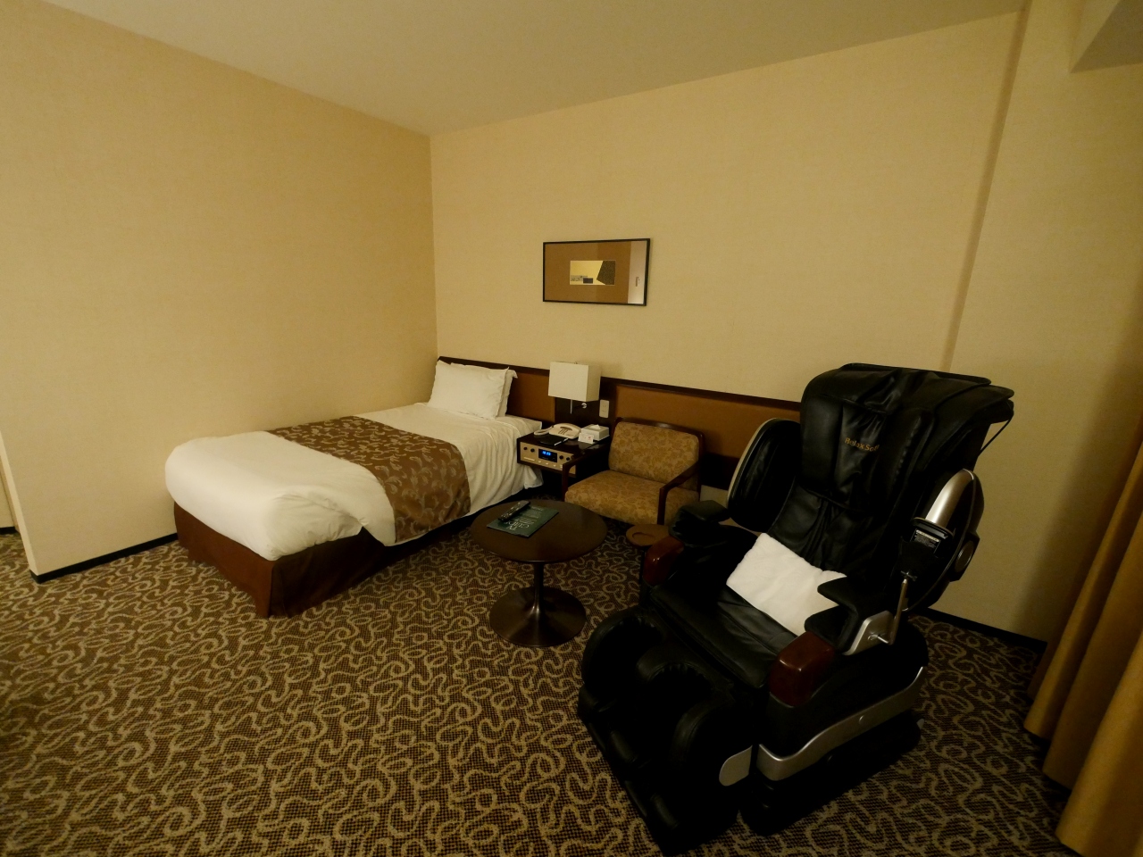 以前から長岡に来るとこのホテルに宿泊することが多い.今回は朝食なしだった.部屋はシングルだが,なぜかマッサージ機がでんとかまえていた.まあ型凝り性の人にはべんりだろうね.しかし部屋にあるとは驚いた.朝食にサンドイッチを作ってもらったがまあまあだった.