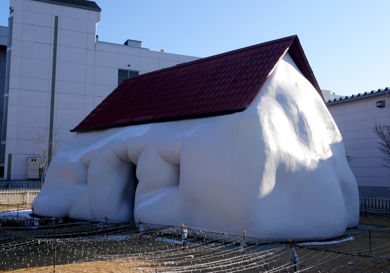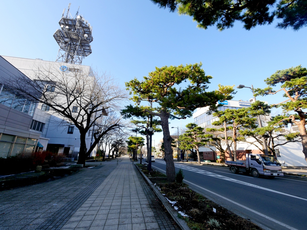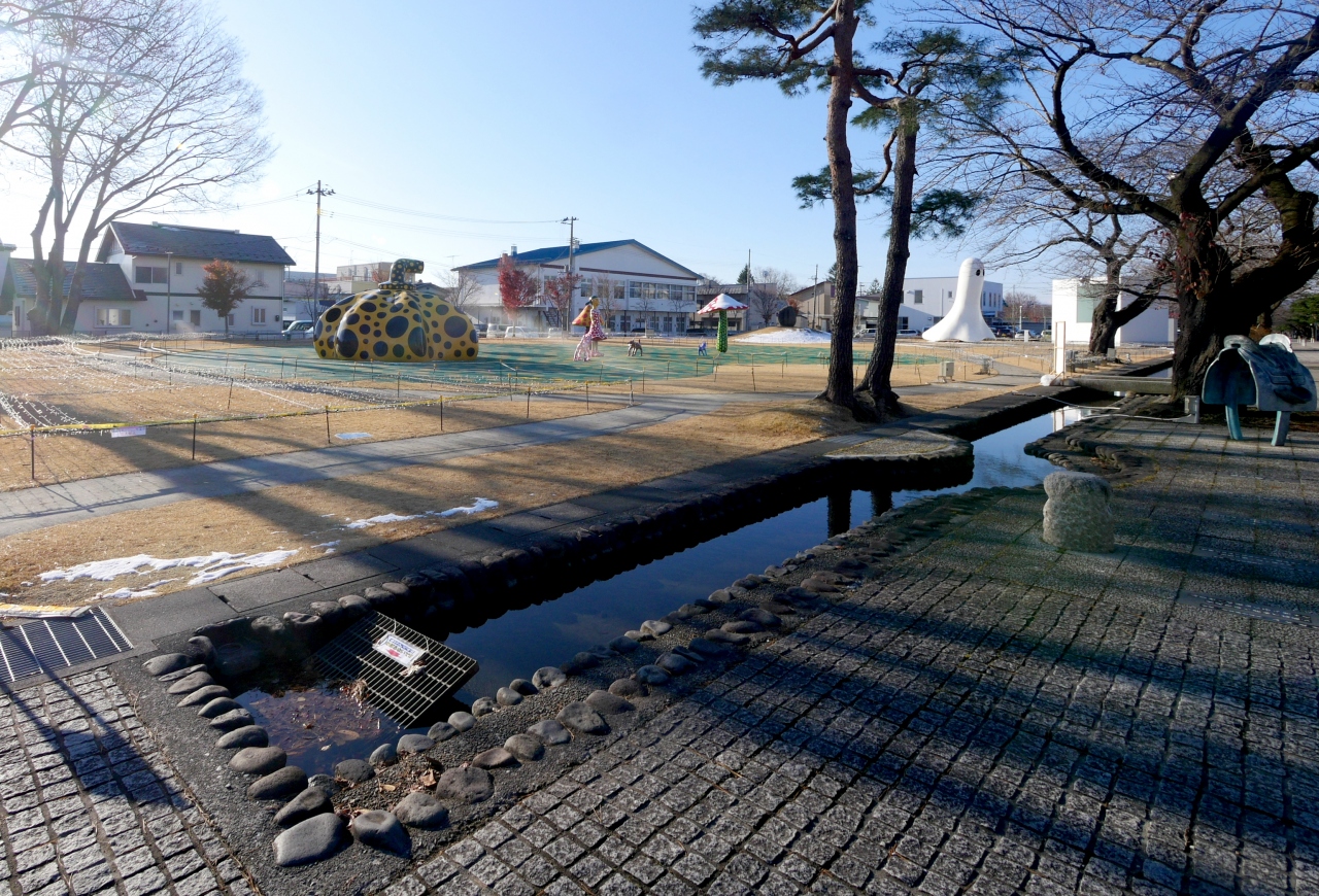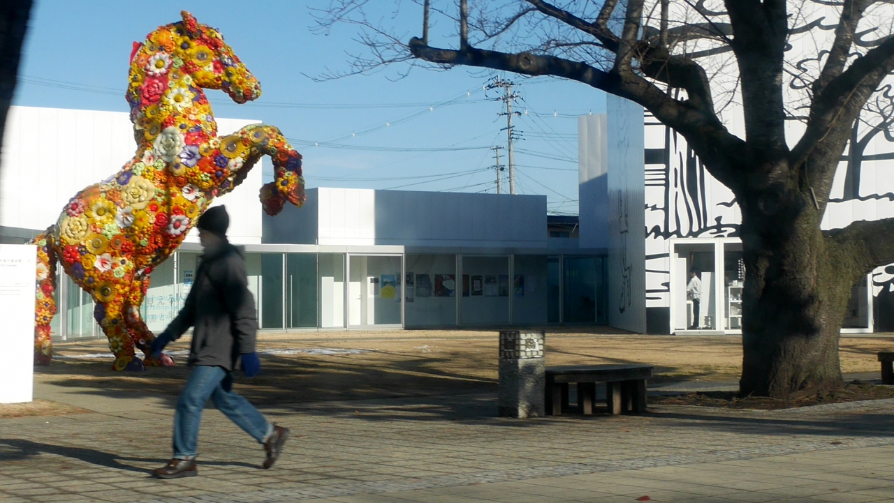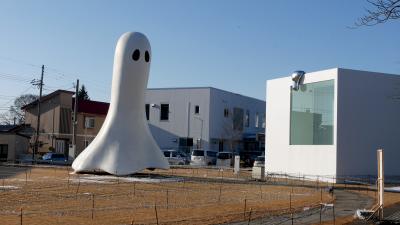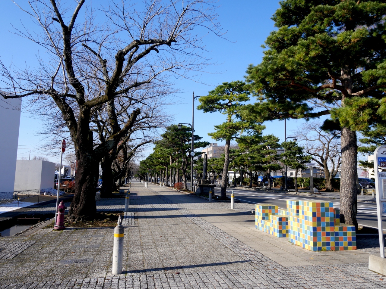 桜並木と松並木が二重にコントラスト.その間に現代美術が並ぶ.ゴースト,ファットハウス,愛はとこしえ十和田でうたうなど,超モダンな現代美術と整然としたハイセンスな通り.びっくりした.30分しか時間がなかったがまたぜひ歩きたい道だ.また現代美術館もいってみたい.