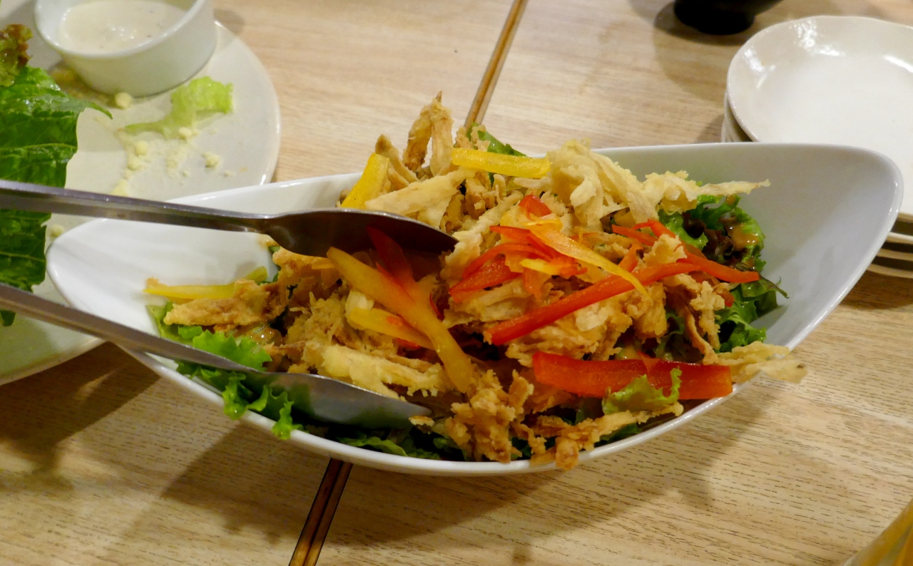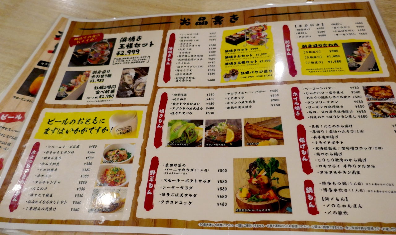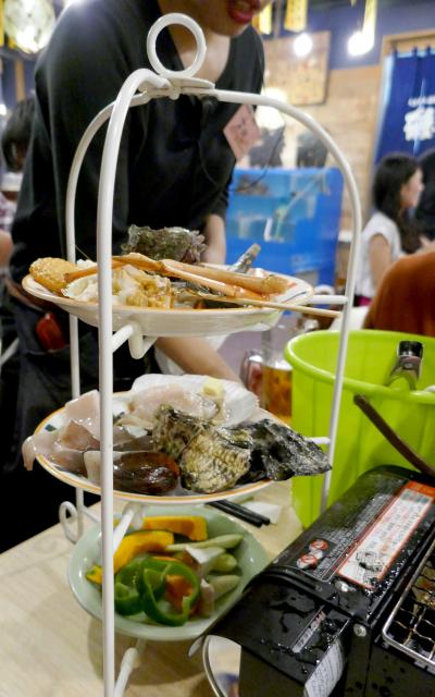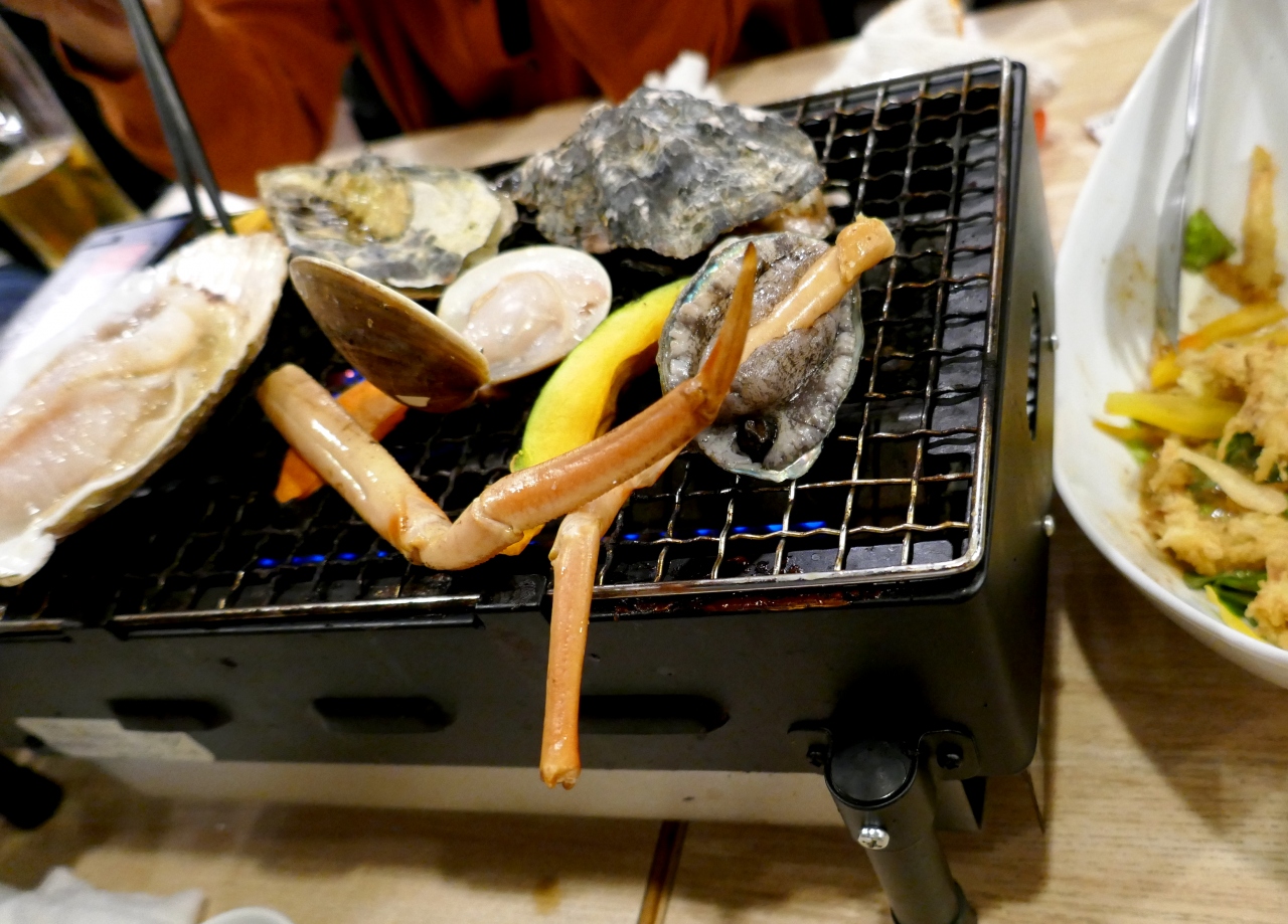 土曜日なので2時間の限定つきで中に入れた.若干価格は高めだったがなかなかおいしかったし,奇抜なシーザーサラダなどなかなかの料理もあった.浜焼き王様セット2999円,焼き茄子や焼きアスパラなどもおいしかった.4人で23234円 一人5800円だった