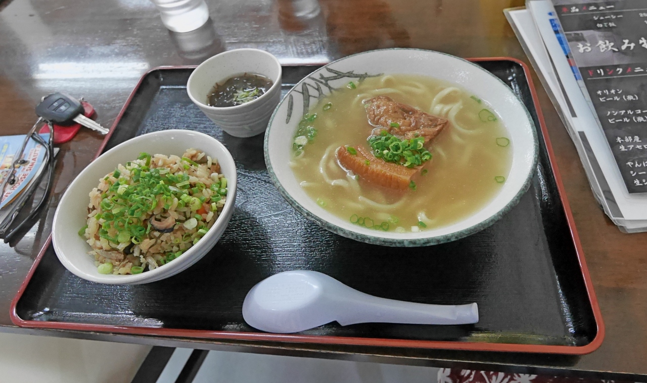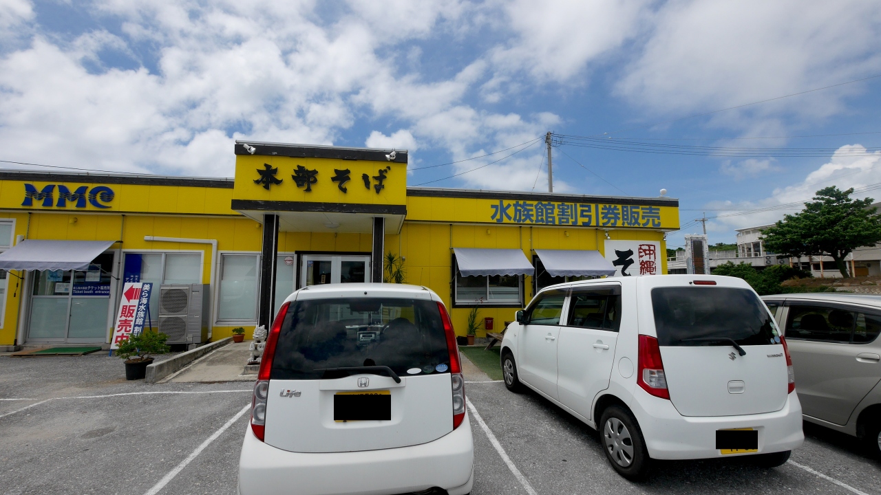 瀬底大橋近くの本部そば.外観はレストランかマリンハウス風でとても「沖縄そば=すば」屋とは思えなかったが,食べたそばはあっさりとしたかつおだし味だし,肉も比較的脂身が少なくおいしかった.ここまで戻ってきてこの店にしてよかったと思う.ジューシーそばセット900円 割とおいしい 沖縄そばもジューシーもいいお味 もずく付き スープは鰹節ベースで割とあっさりしている 海鮮丼 1000円 同伴者が食べた