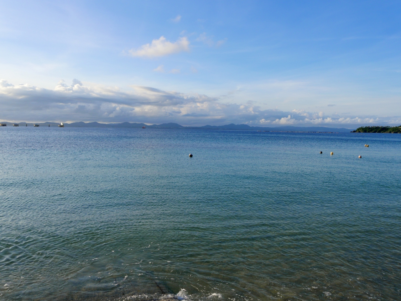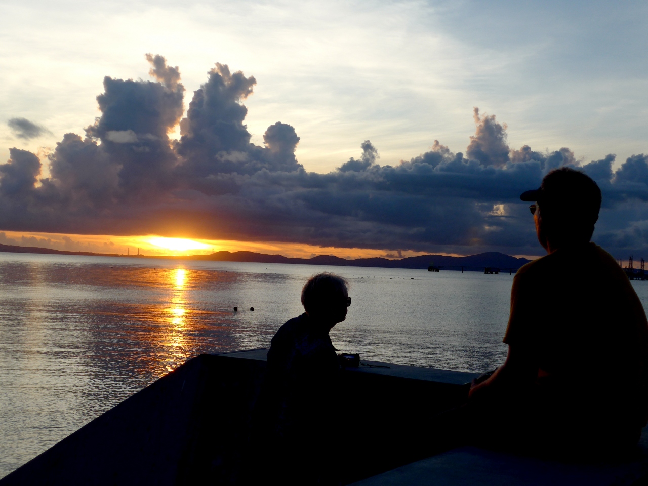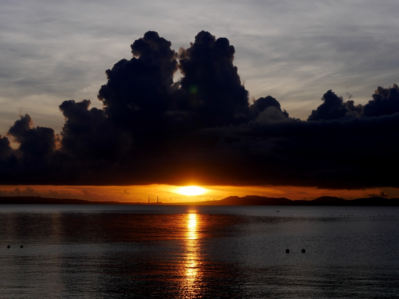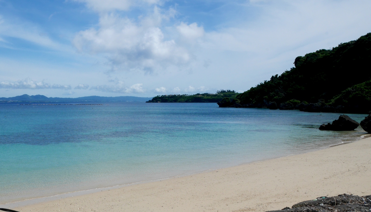 宮城島の一番奥の方にあるビーチ あまり人がいないビーチだが,ここからみる夕日はとてもきれい.金武湾と沖縄本島に陽が落ちていく.内側の海なので波もそれほど高くないビーチ トロピカルな夕日をゆっくり眺めるにはいい場所だと思う