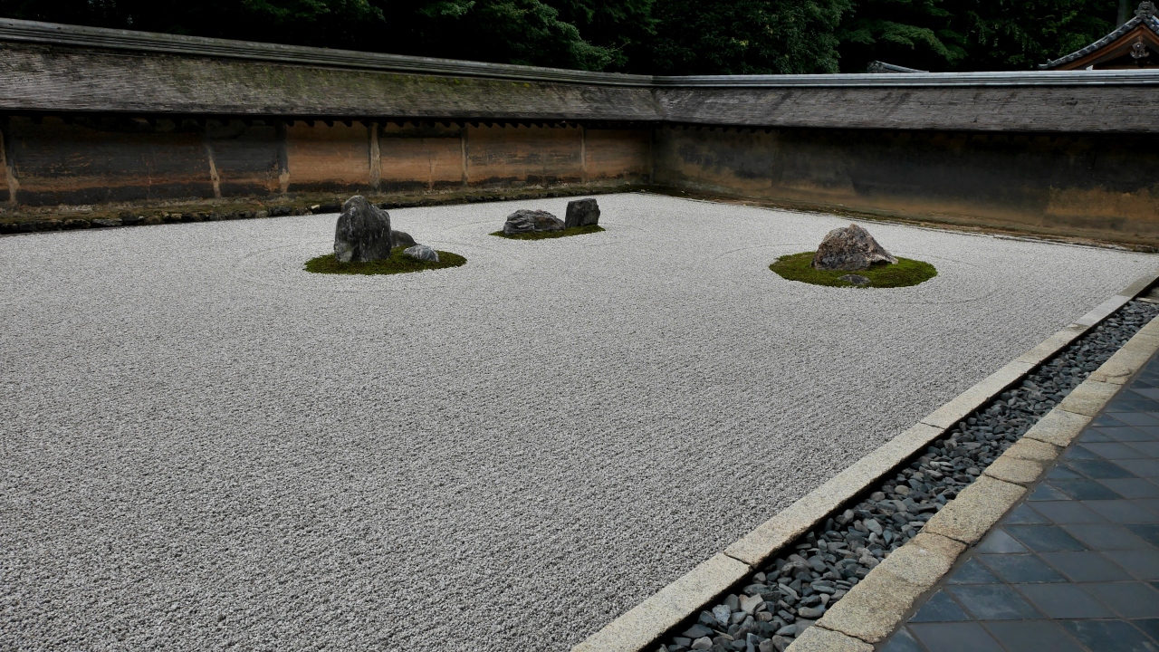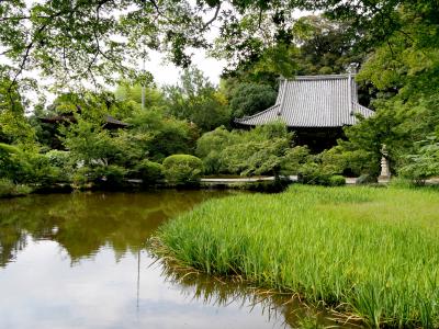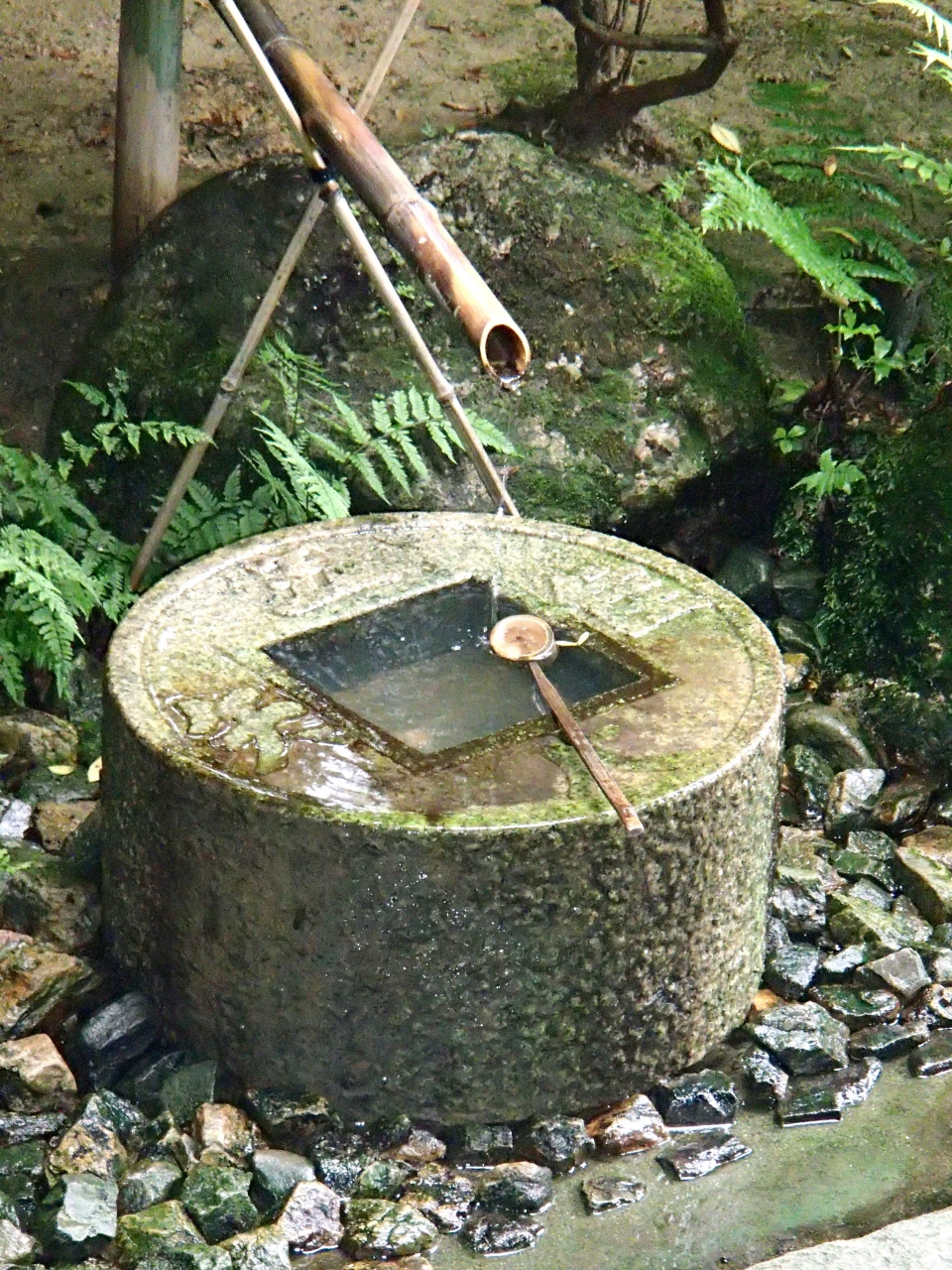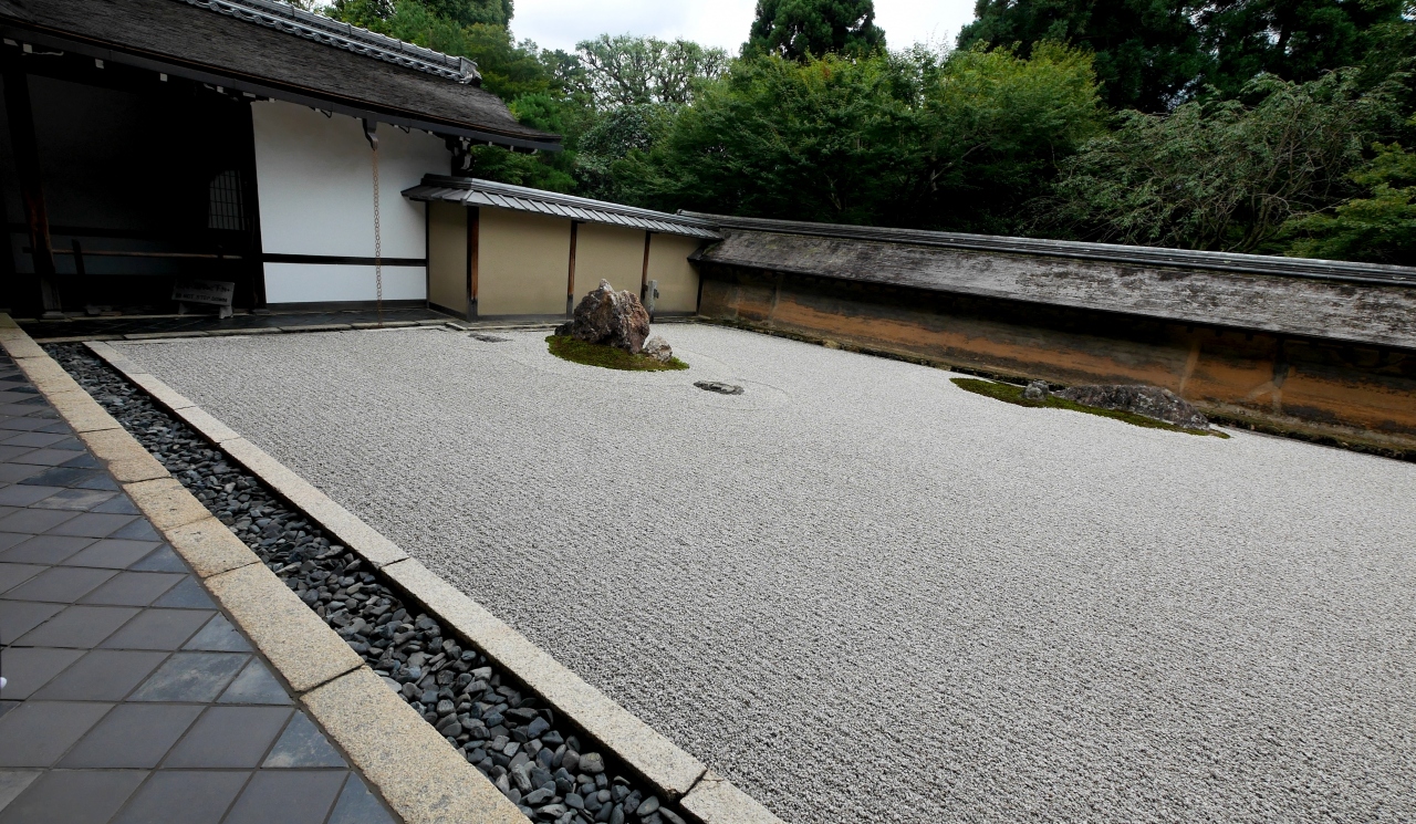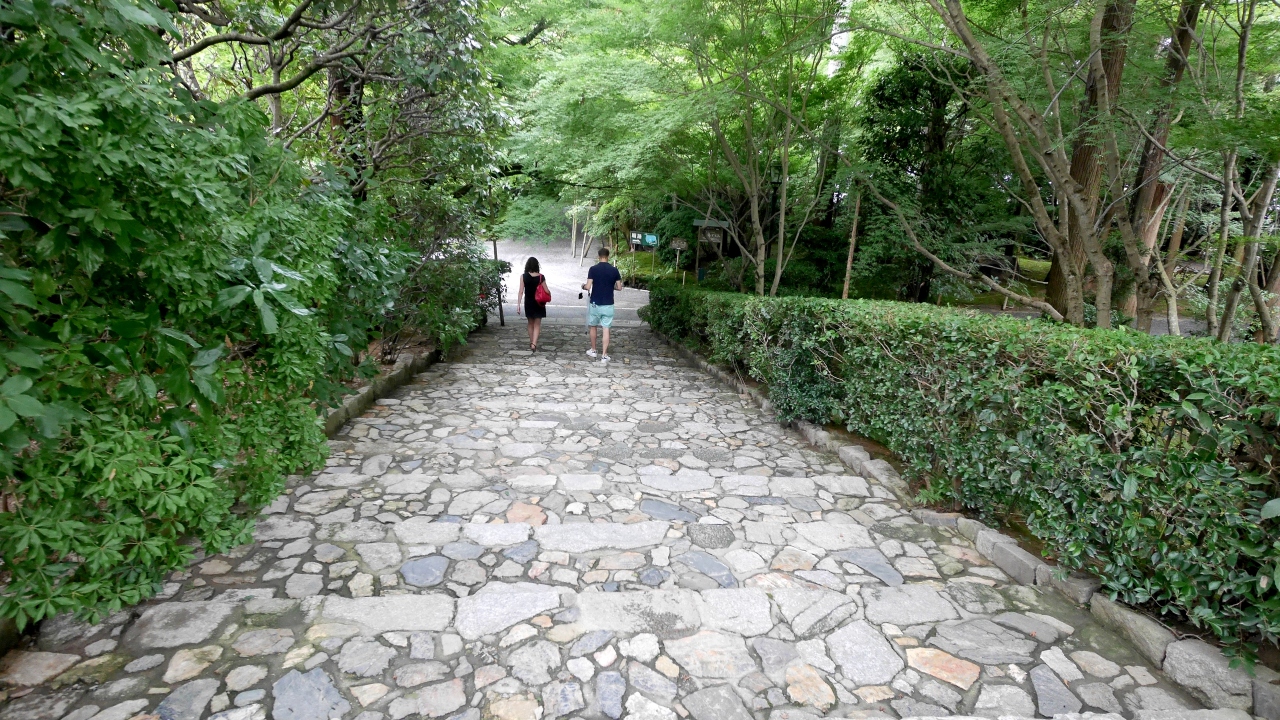 ここの駐車場は無料!おおくの社寺が駐車料を徴収するのに,非常に良心的.また参道や池の緑がとてもきれい.真夏にいっしょに行ったフィンランド人もこの緑にほっとしたよう.鏡容池のたたずまいや,弁天様もいい感じ.この石庭の意味を考えると,まあ大変だが,この風情だけでも感じてもらえてよかった.ともかく駐車料がかからなく,拝観料も500円と比較的安い