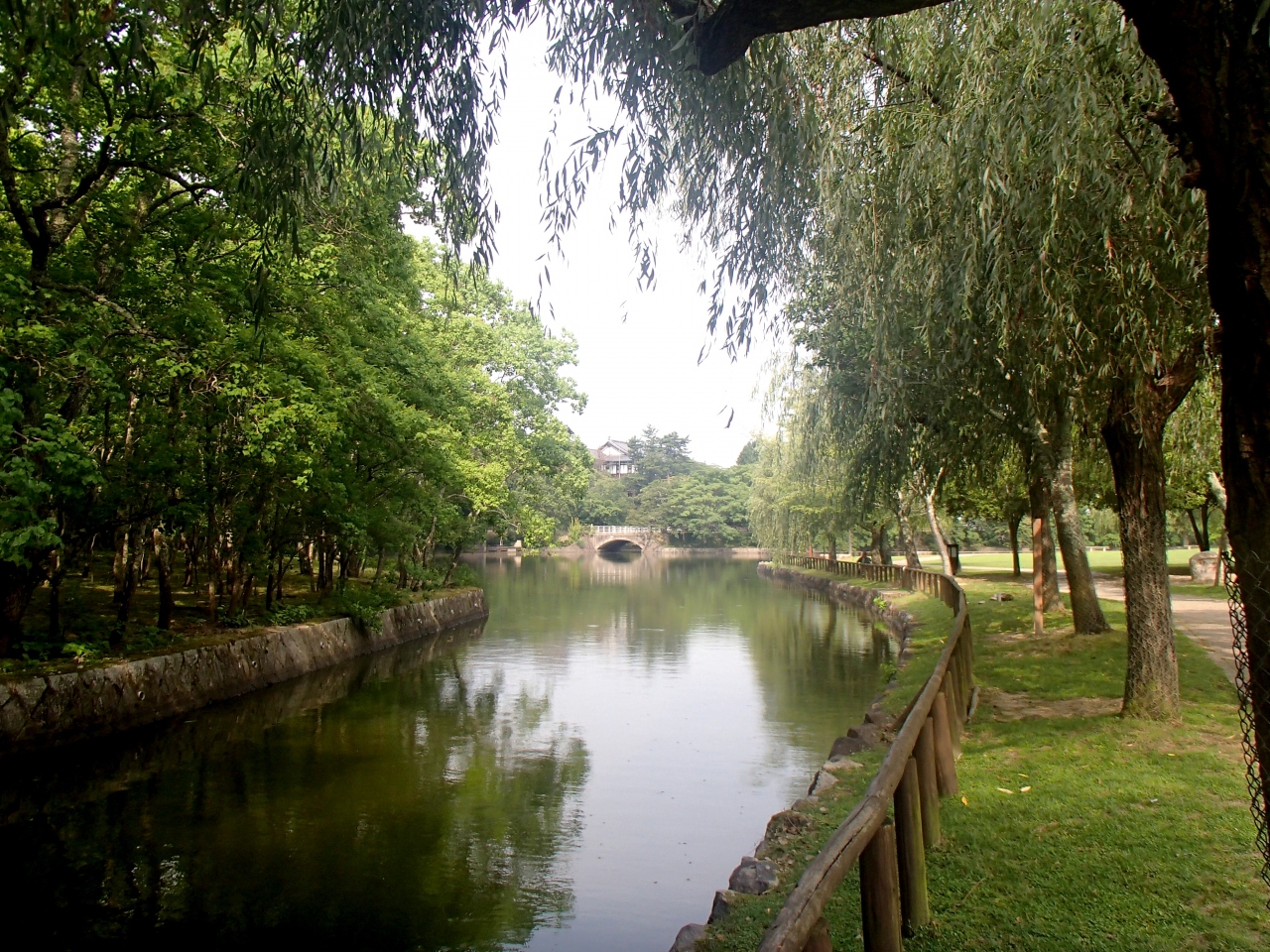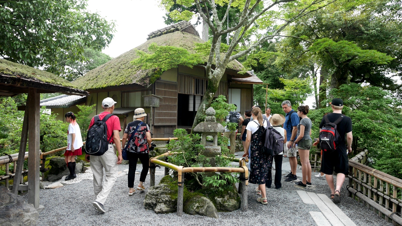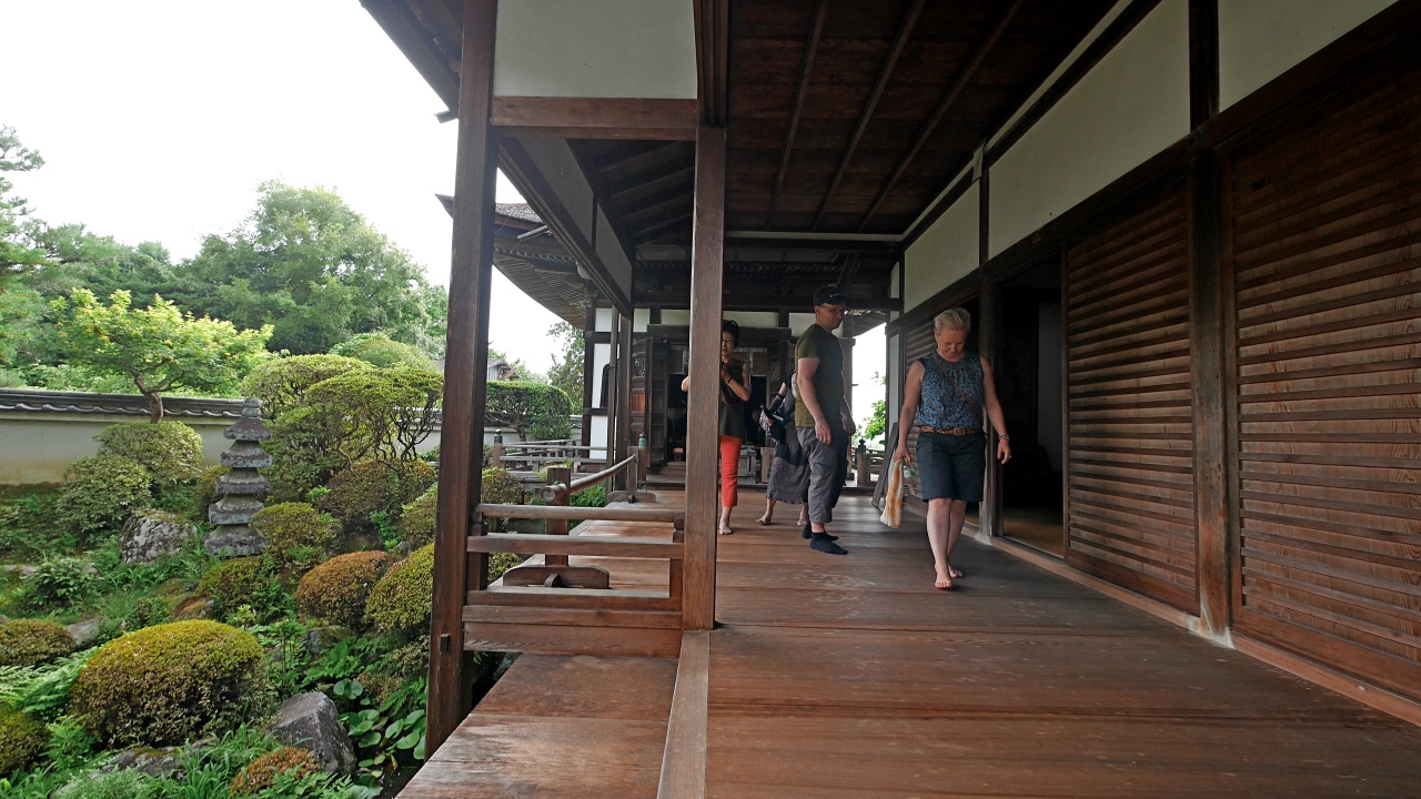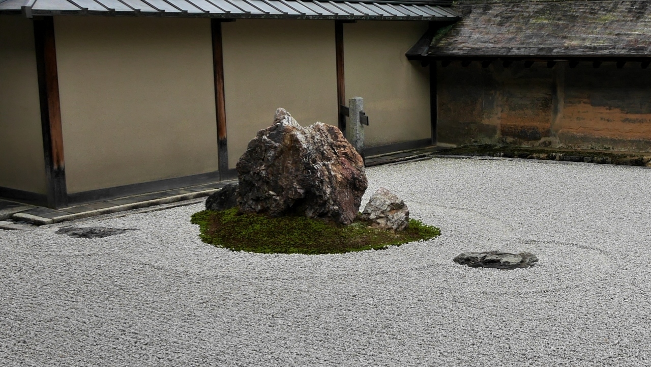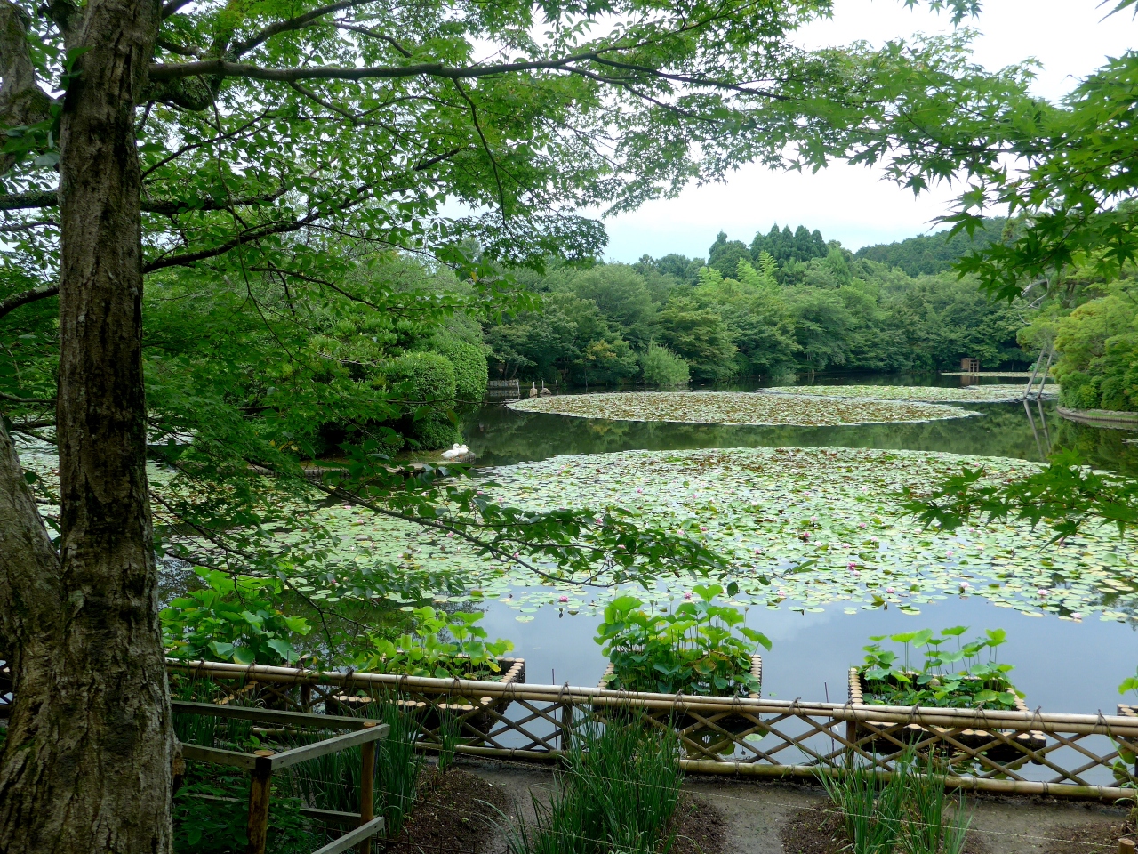 ここの駐車場は無料!おおくの社寺が駐車料を徴収するのに,非常に良心的.また参道や池の緑がとてもきれい.真夏にいっしょに行ったフィンランド人もこの緑にほっとしたよう.鏡容池のたたずまいや,弁天様もいい感じ.この石庭の意味を考えると,まあ大変だが,この風情だけでも感じてもらえてよかった.ともかく駐車料がかからなく,拝観料も500円と比較的安い