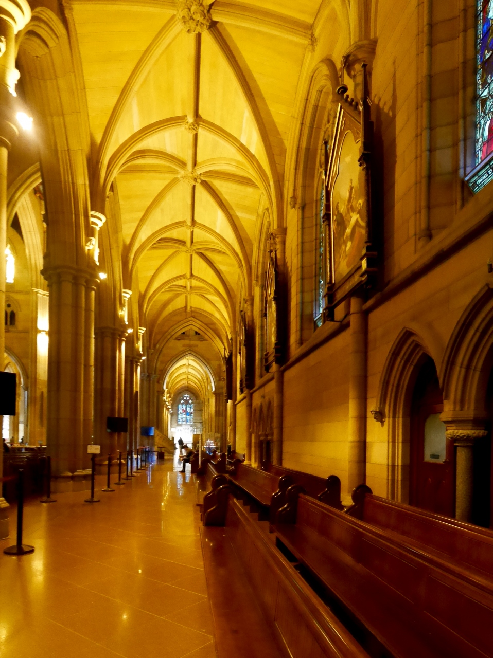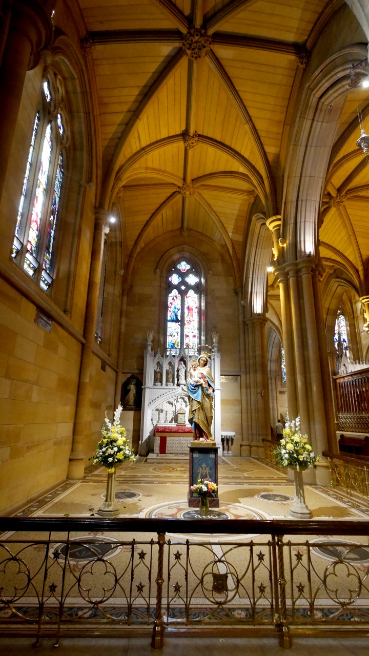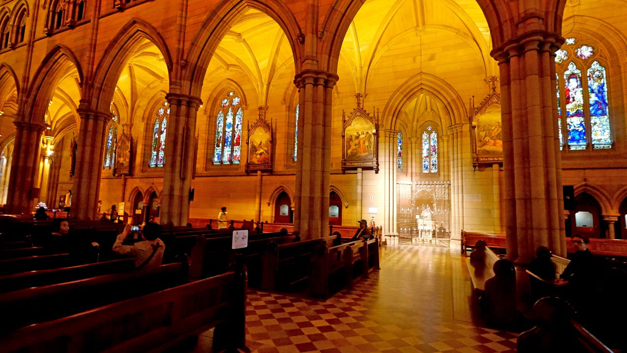カトリックの教会 1865年以前の教会が焼失 1928年再建 尖塔の高さ74.6m 南半球最大のゴシック建築とか.中は広大でカトリックらしい雰囲気.中国人の観光客が多く,フラッシュをたいたりマナーが悪いのが気になった.オーストラリアでのキリスト教の発展を考えるのにいい教会.英国教会に似て,ステンドグラスがすごい